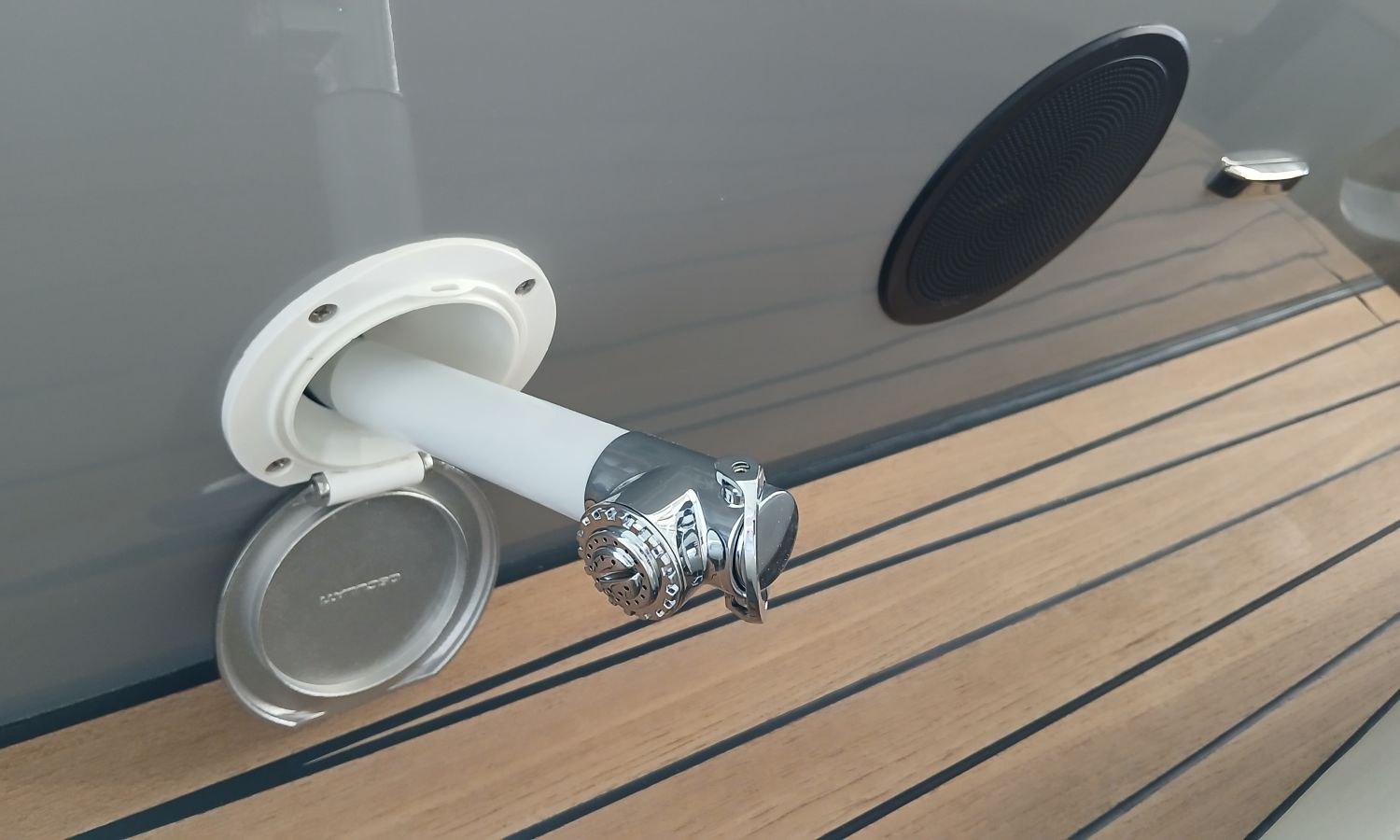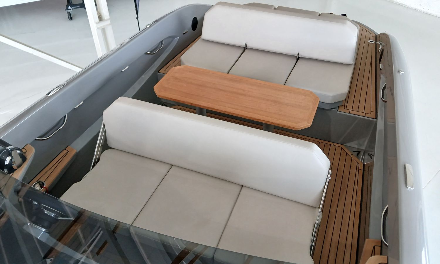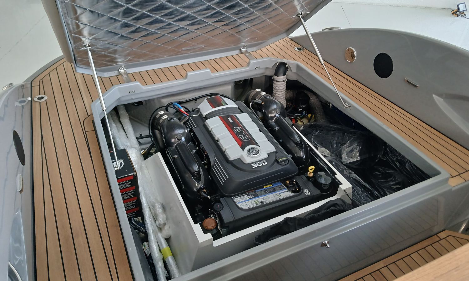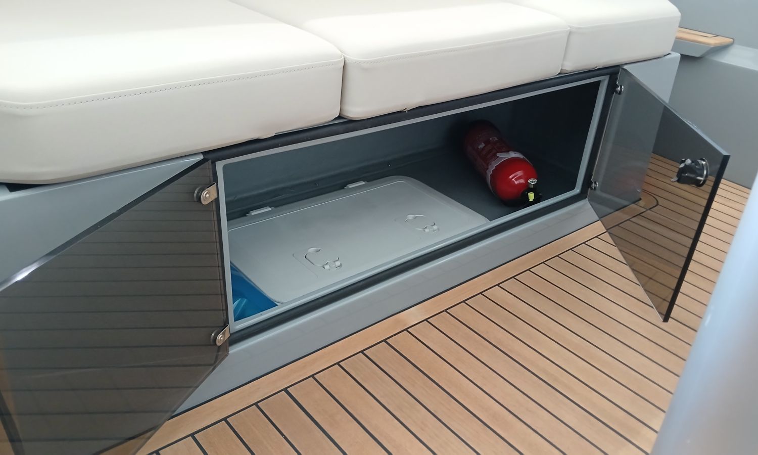 COQUE COULEUR GREY SKY (RAL 7037) - SELLERIE SILVERTEX - DEUX ECRANS RAYMARINE 7" SUR LE TABLEAU DE BORD AVEC SYSTEME DOMOTIQUE - CROCHET A SKI - DOUCHE DE COCKPIT - FEUX A LEDS DANS LE COCKPIT - DEFENSES - REFRIGERATEUR LUXE - AUVENT DE TYPE HAIMA - TOILE D'ANCRE - CAPTEUR DE PROFONDEUR - PROPULSEUR D'ETRAVE - EXTINCTEUR AUTOMATIQUE - TECK SUR PONT ET PLATEFORME DE BAIN.Description du bateau