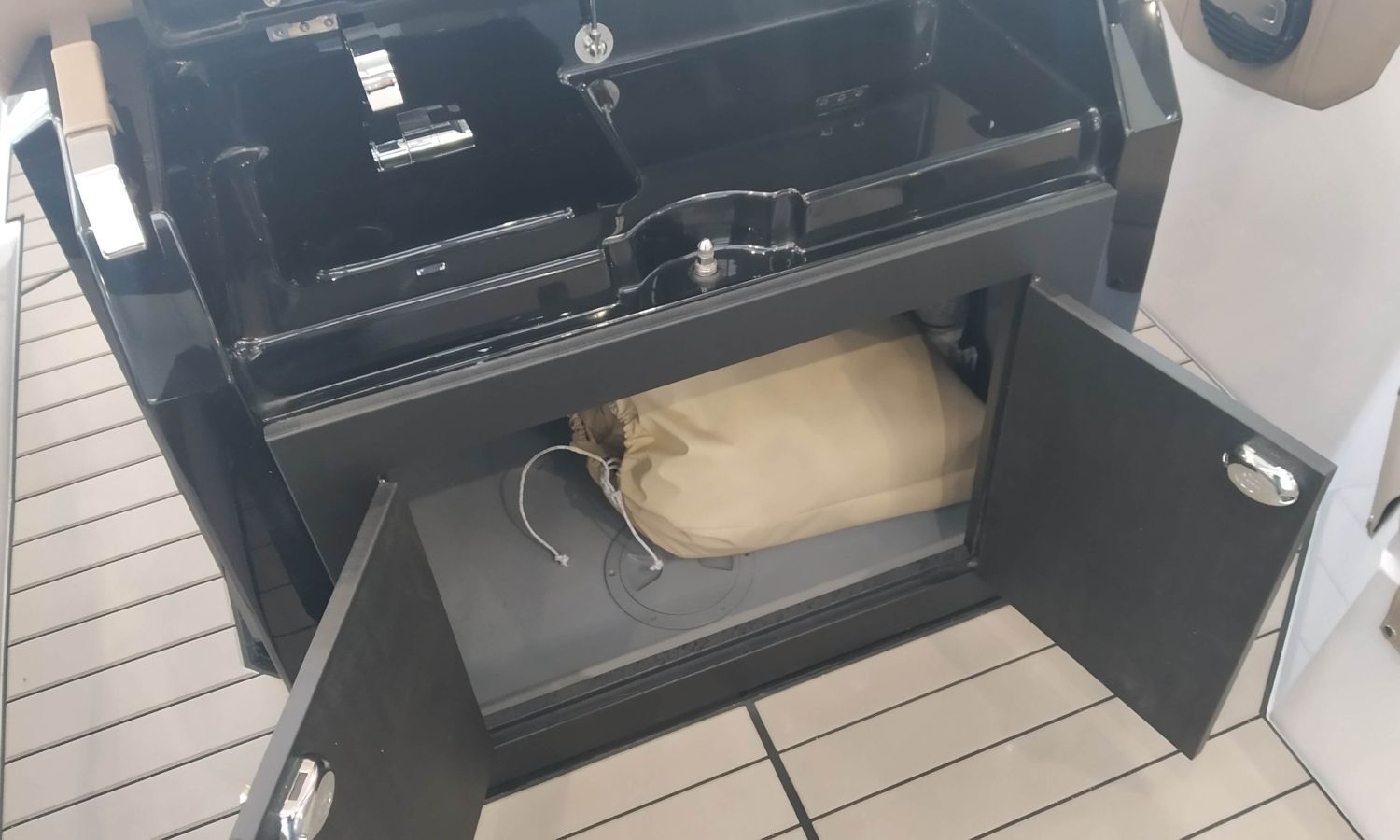 Compas encastré - Console Luxury - Installation pour batterie additionnelle - Installation stéreo avec 2 haut-parleurs et Bluetooth - Kit mât de ski - Kit bain de soleil à poupe - Cockpit en Seadeck - Prise de quai 220 V - Tapisserie Luxury - Table de cockpit en teck - Taud console et siège - Taud soleil - WC électrique avec réservoir d'eaux sales - Transport chantier naval à Costa Brava.Description du bateau