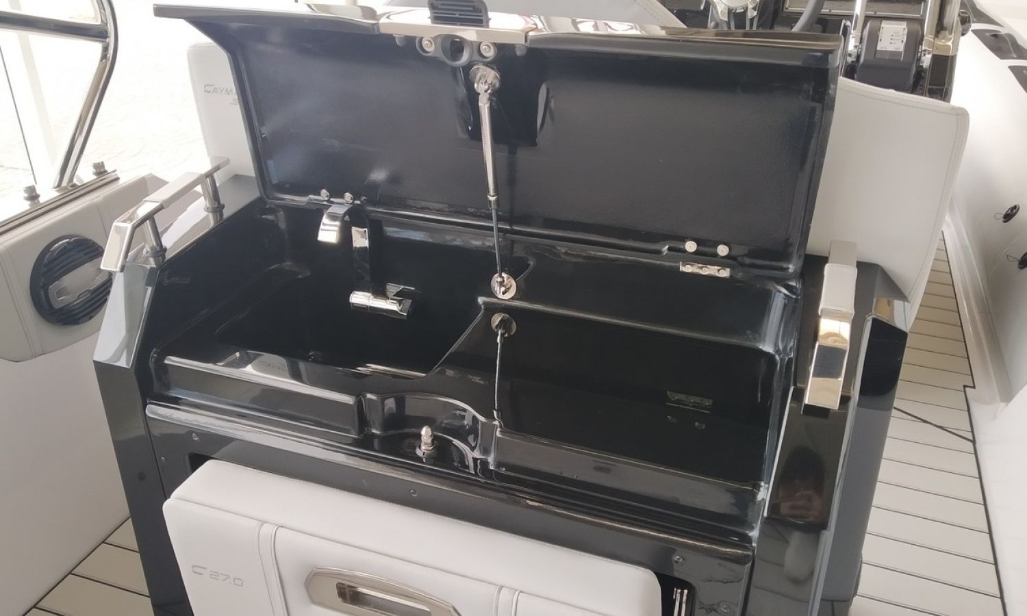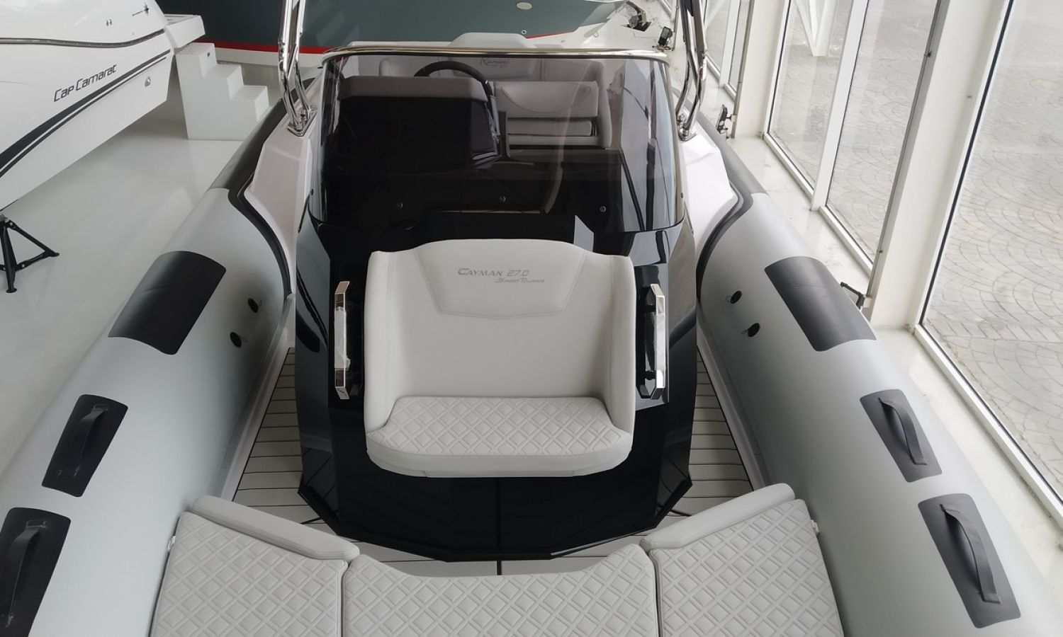 Bateau en stock. Livraison immédiate. Modèle Cayman 27.0 Sport Touring du chantier naval italien Ranieri International, 8,60 m de longueur.ESC-Nº D7083