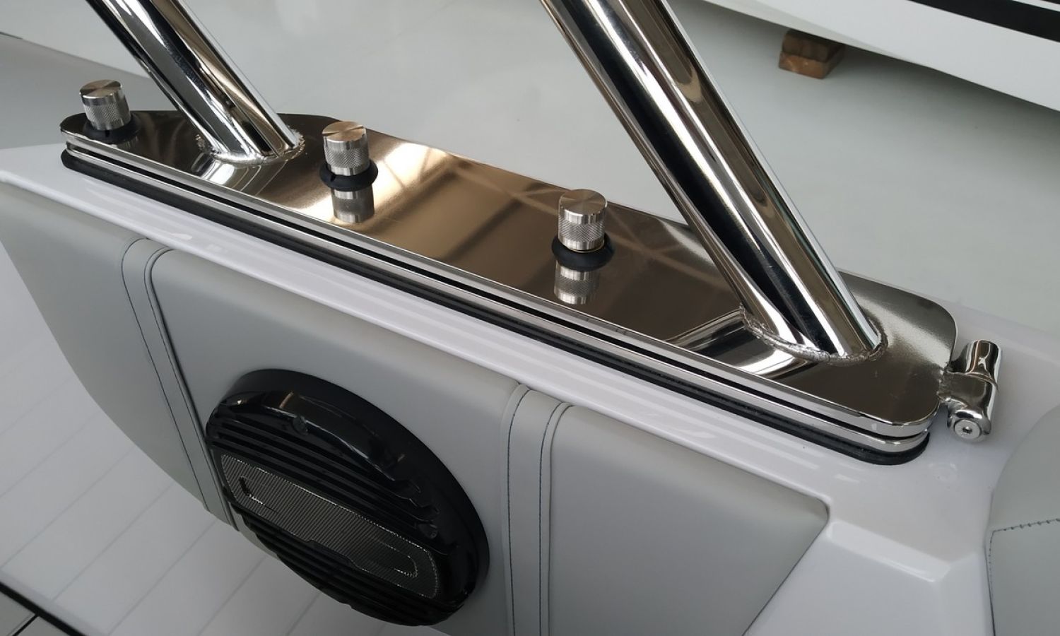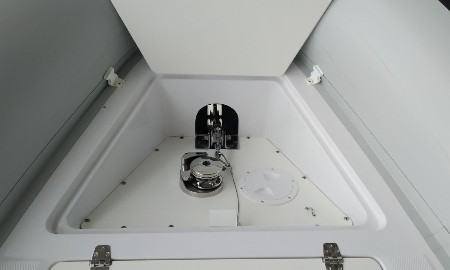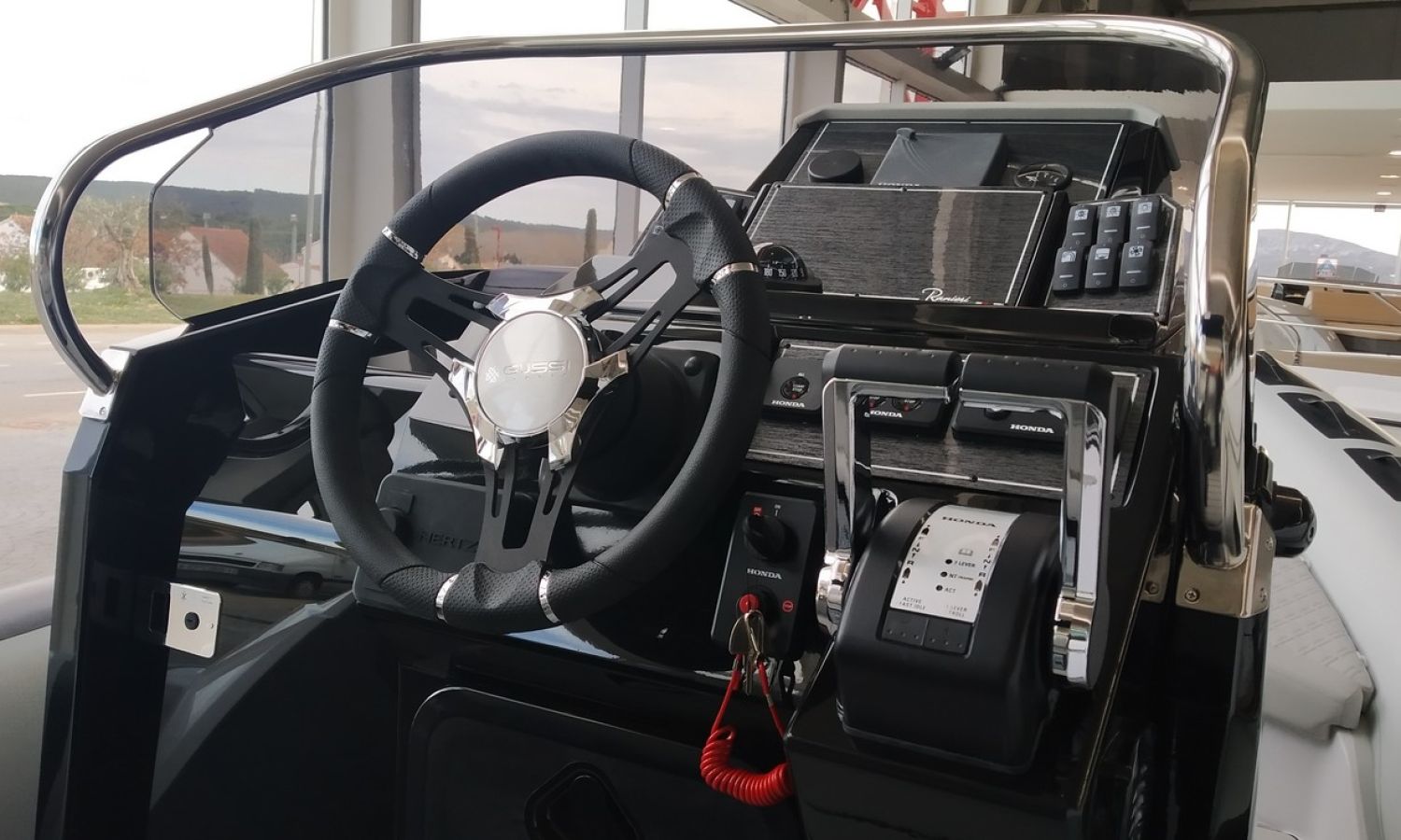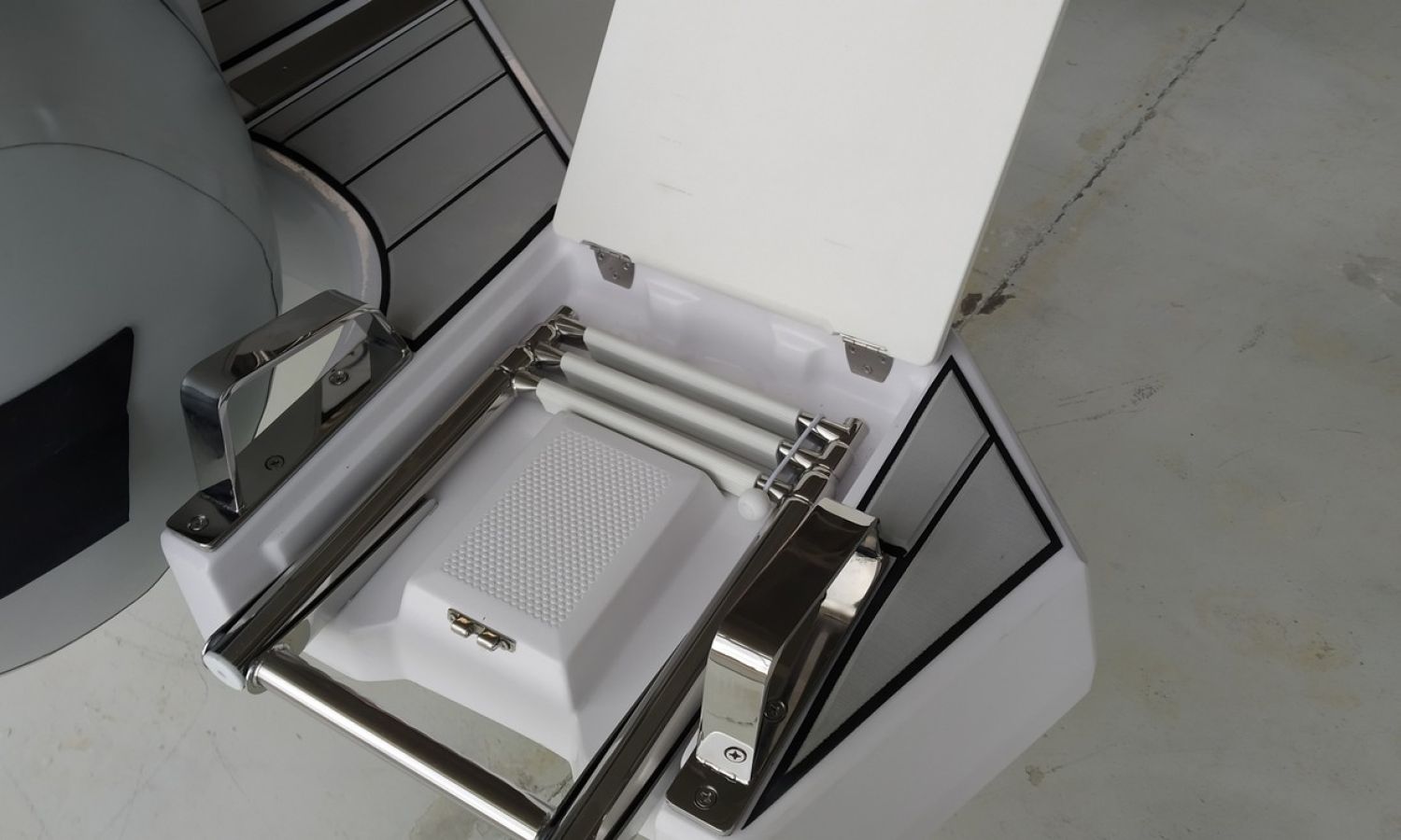 Compas encastré - Couleur gelcoat console et siège - Compte-chaîne - Propulseur d'étrave - Réfrigérateur extérieur en inox - Installation pour batterie additionnelle - Installation stéreo avec 2 haut-parleurs et Bluetooth - Kit mât de ski - Kit bain de soleil à poupe - Éclairage LED dans le cockpit - Cockpit en Seadeck - Seadeck sur les plateformes de bain - Prise de quai 220 V - Roll-bar rabattable en inox avec double taud soleil - Siège arrière pliable - Tapisserie Luxury - Table de cockpit en teck - Taud console et siège - WC électrique avec réservoir d'eaux sales - Pre-rigging et propulseurs Honda - Montage bi-moteur -Transport chantier naval à Costa Brava.Description du bateau