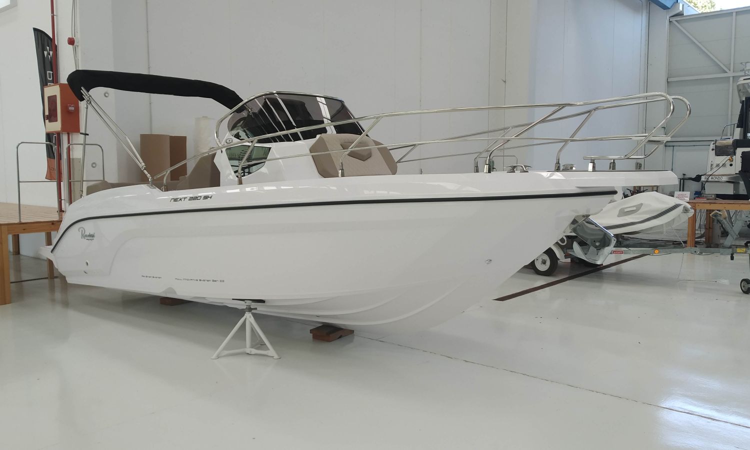 Bateau en stock. Livraison immédiate. Modèle Next 220 SH du chantier naval italien Ranieri International, 7,35 m de longueur.PDM-Nº N2120