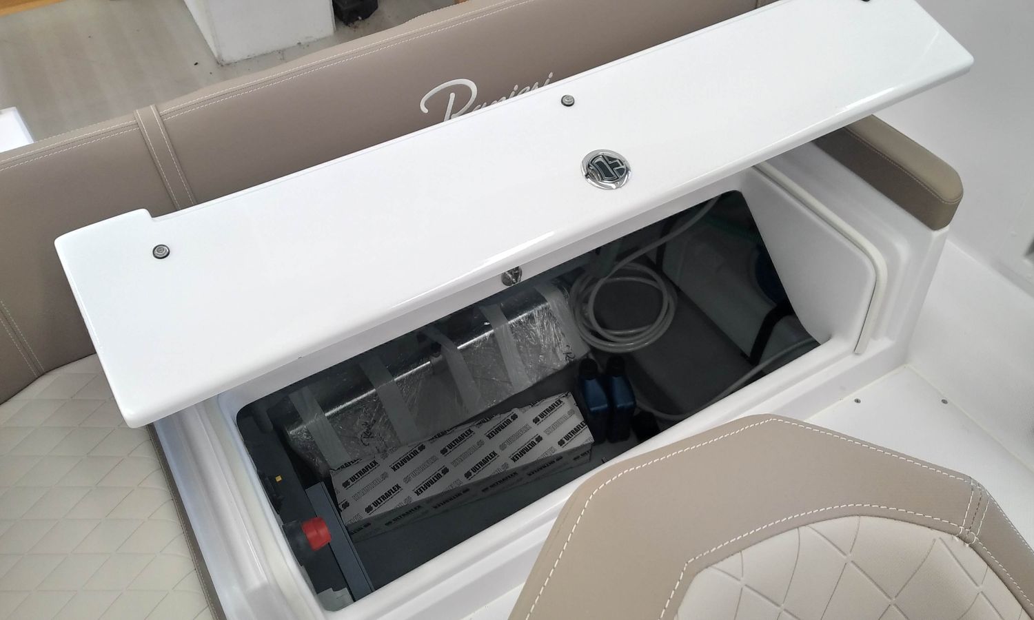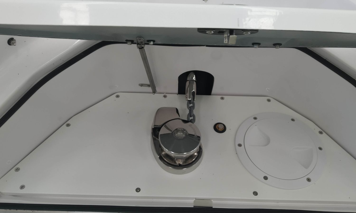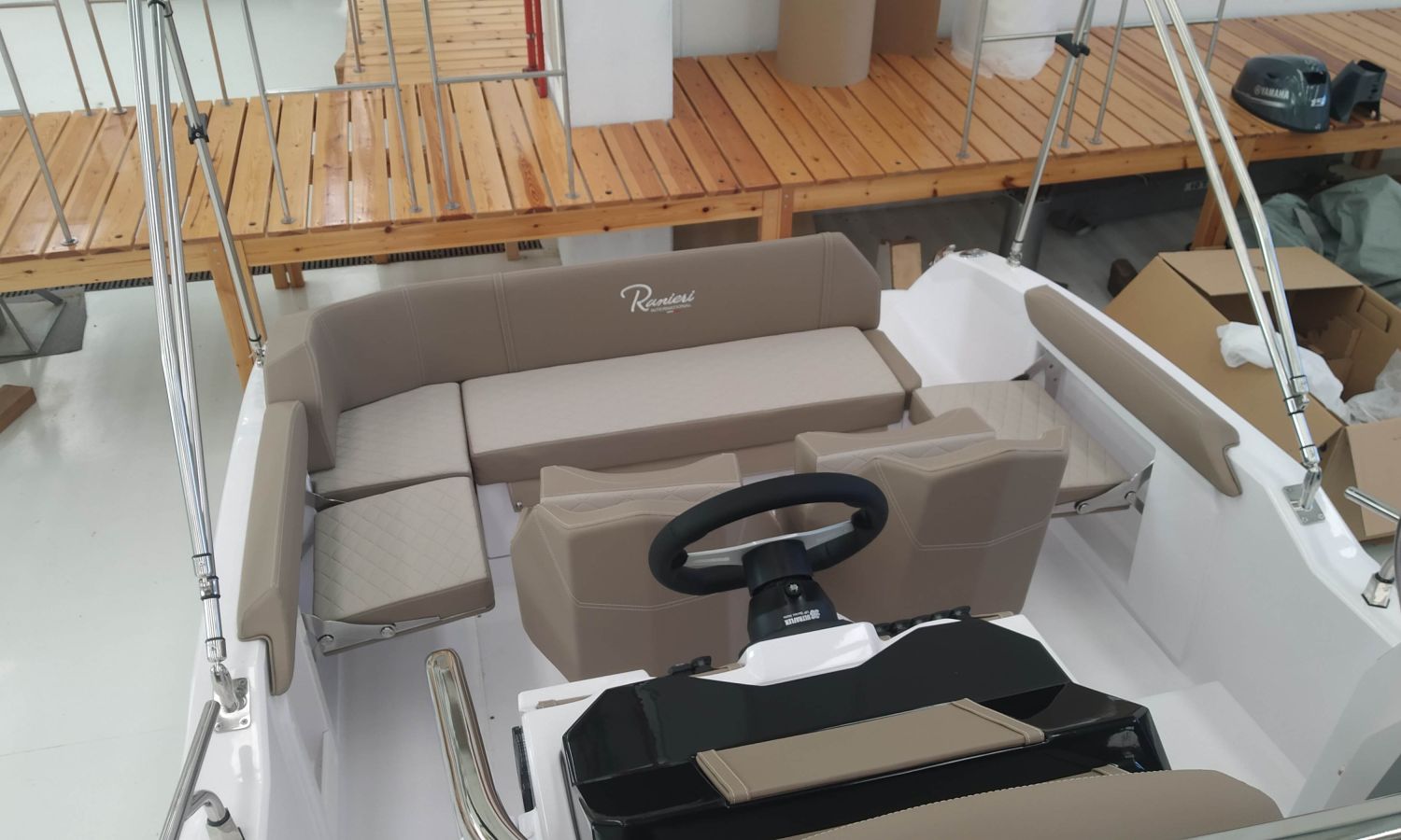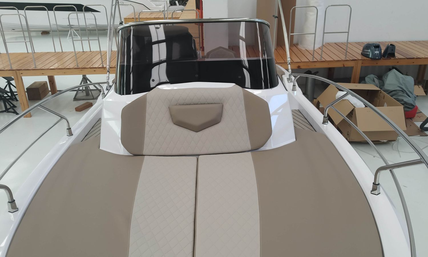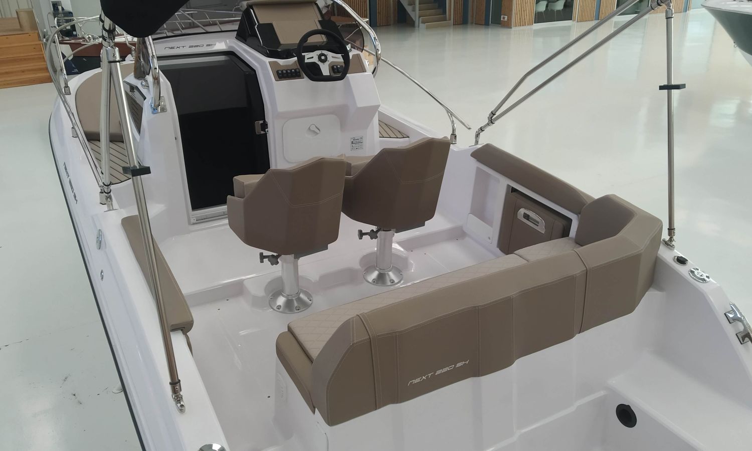 2 Sièges confort S-Line - Console Luxury - Installation douche complète - Guindeau électrique - Bancs latéraux pliables - Sellerie Luxury - Table à poupe en teck - Taud soleil - Direction hydraulique - WC électrique avec réservoir d'eaux noires - Box WC séparé - Transport chantier naval à Costa Brava.Description du bateau