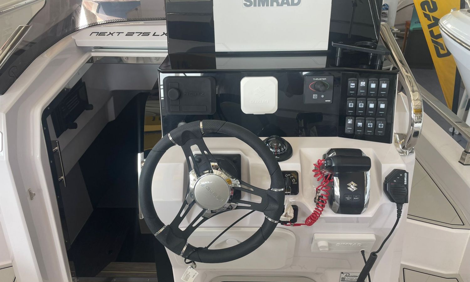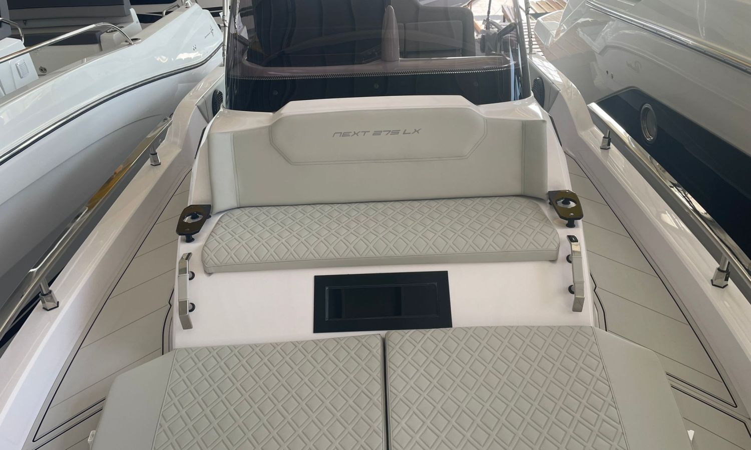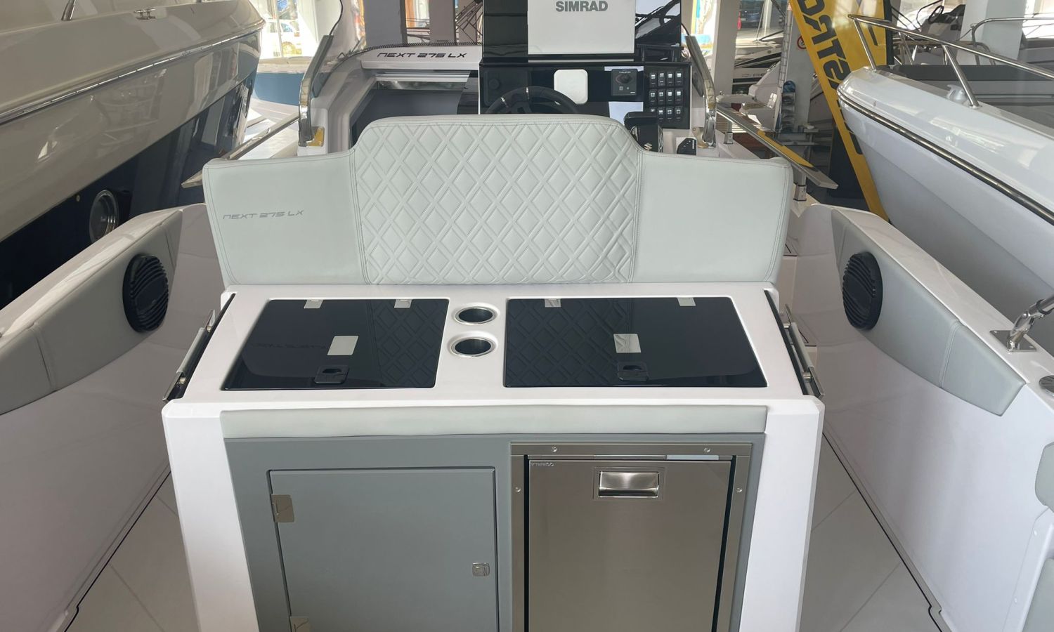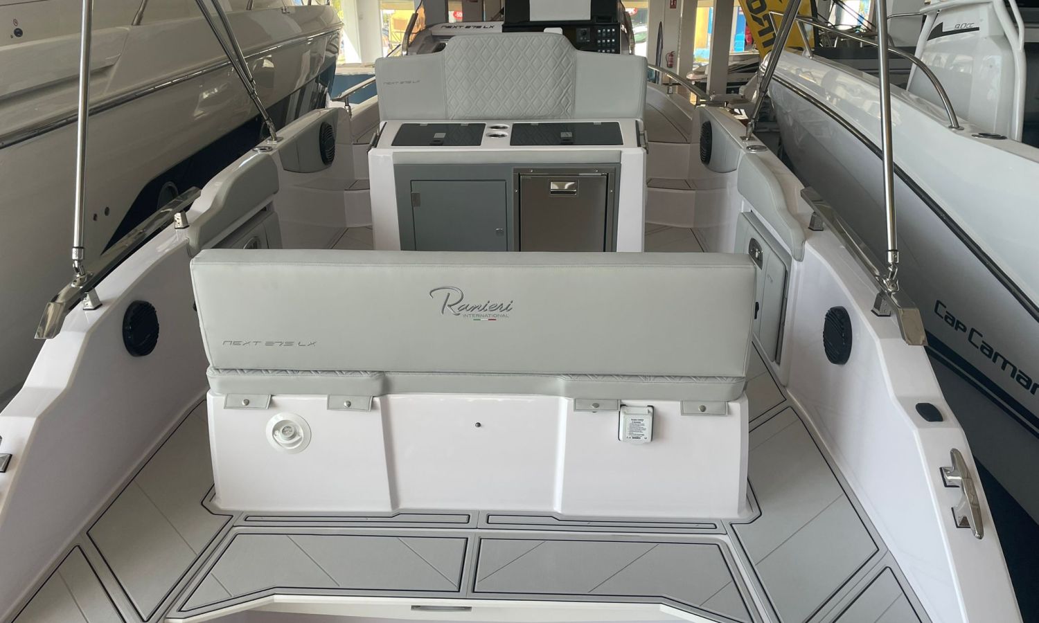 Bateau en stock. Livraison immédiate. Modèle Next 275 LX du chantier naval italien Ranieri International, 8,20 m de longueur.SOL-Nº N5054