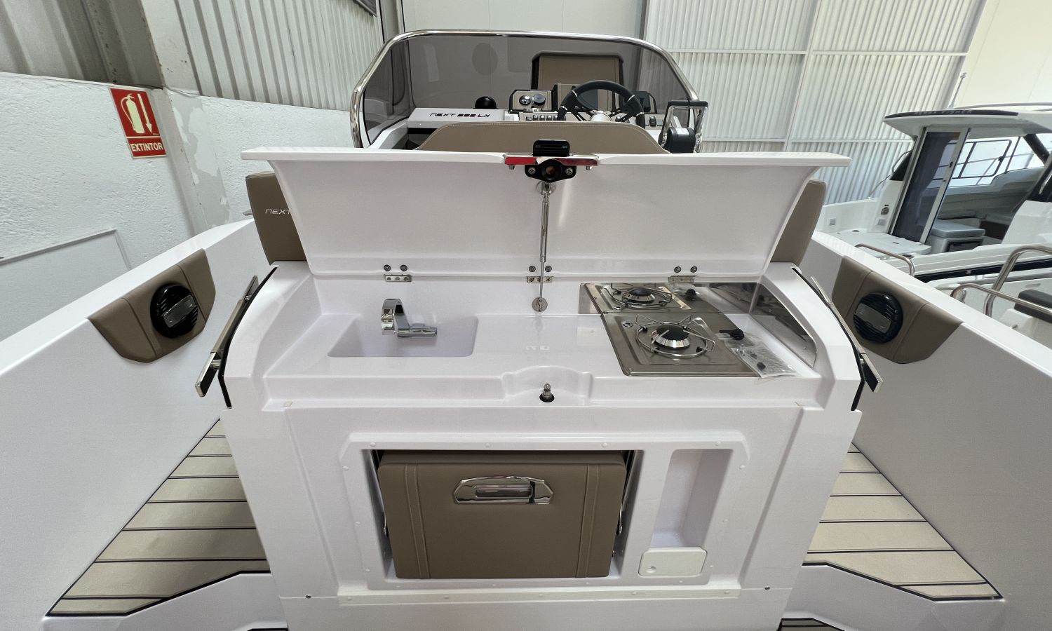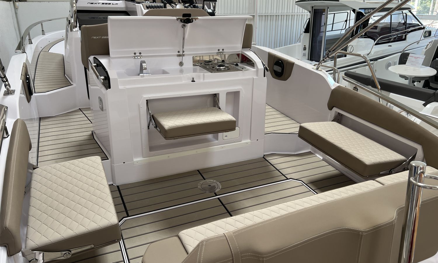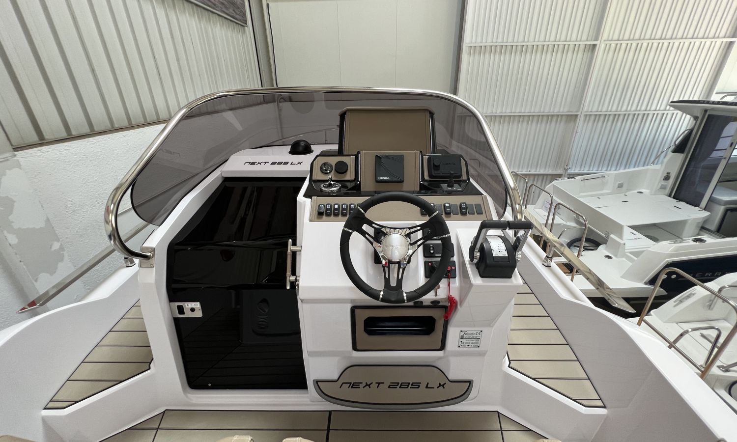 Bateau en stock. Livraison immédiate. Modèle Next 285 LX du chantier naval italien Ranieri International, 8,80 m de longueur.PDM-Nº N8071