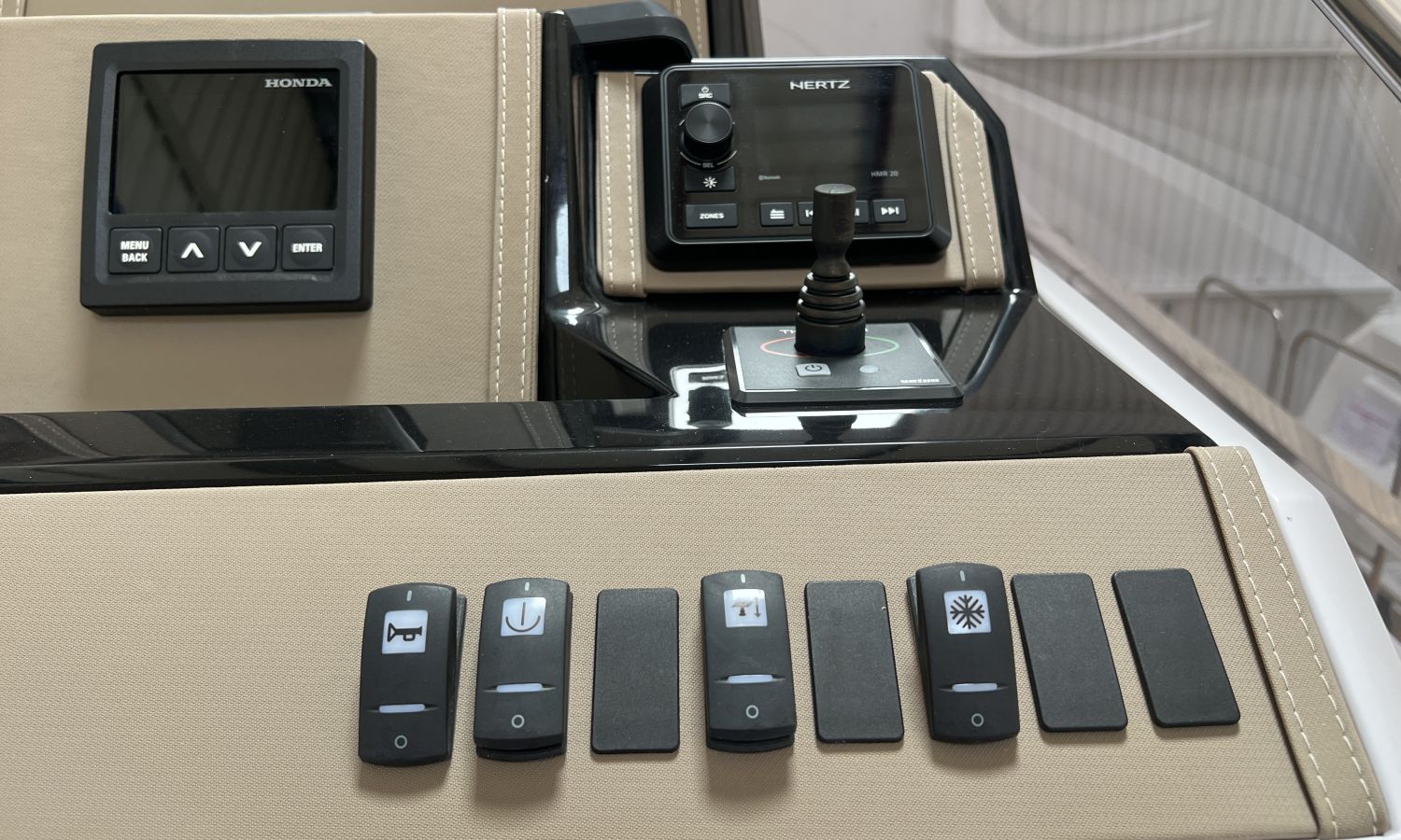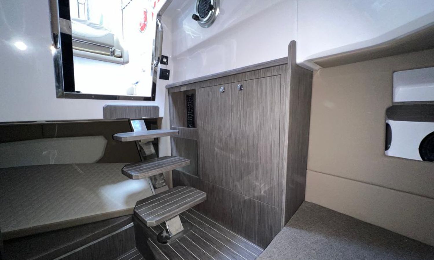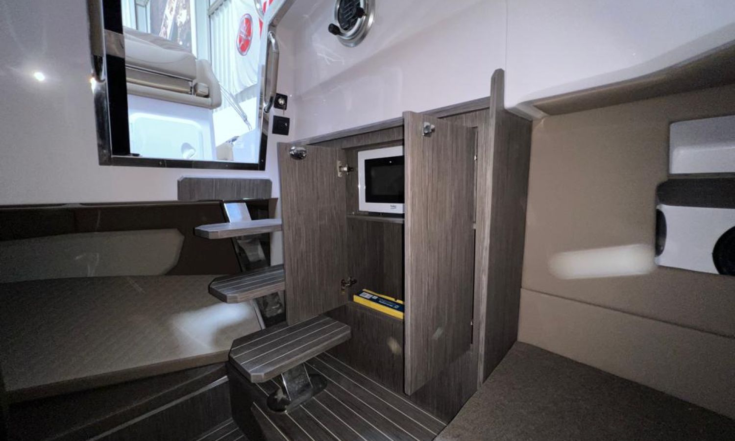Compte-mètres chaîne - Propulseur d'étrave - Four à micro-ondes - Installation pour batterie additionnelle - Kit mât de ski - Prise de quai 220 V - Siège arrière pliable - Bancs latéraux pliables - Taud de mouillage - Taud soleil - Pre-rigging et propulseurs Honda - Montage bi-moteur - Transport chantier naval à Costa Brava.Description du bateau