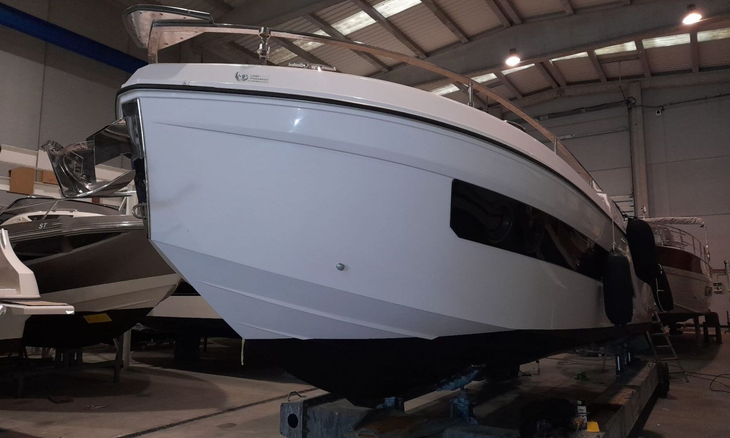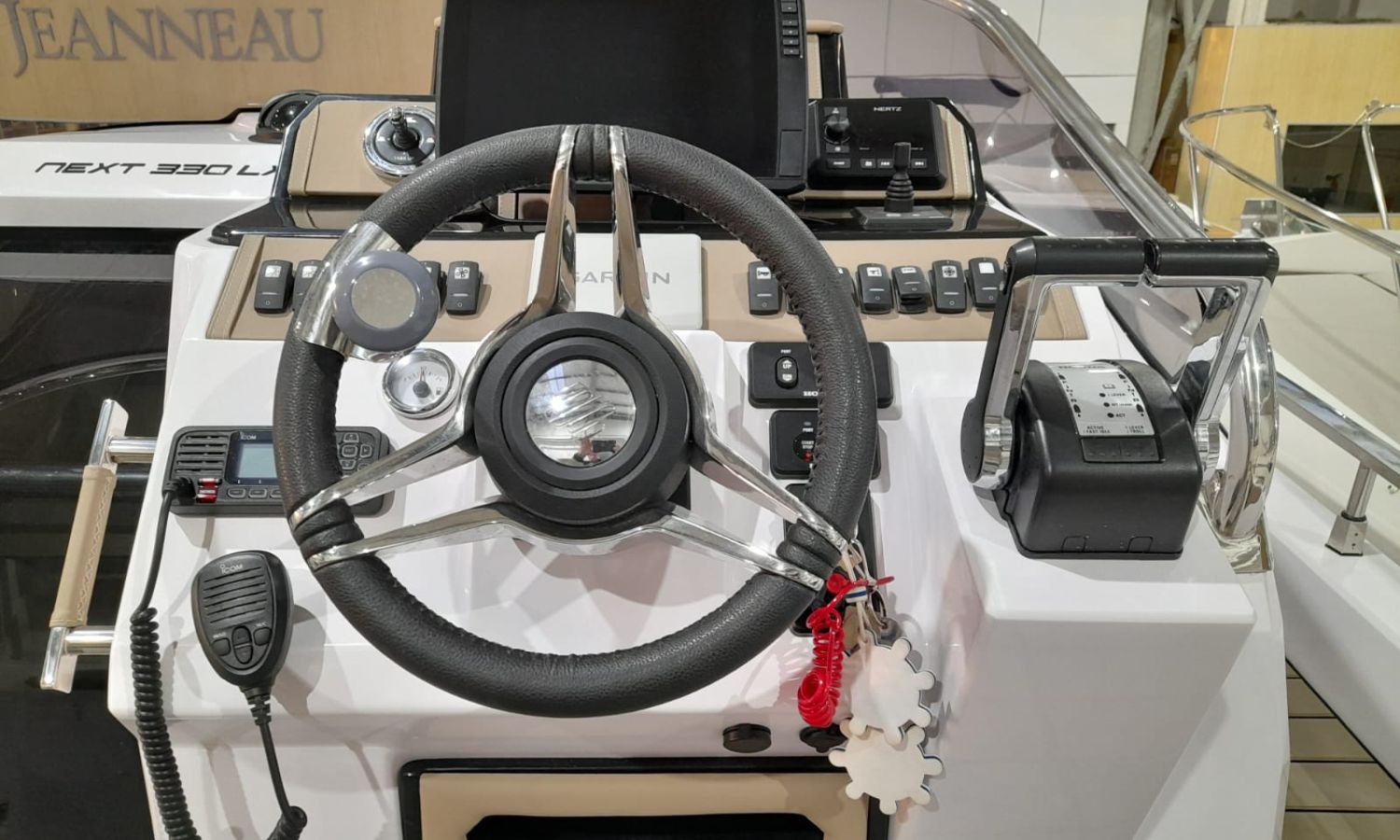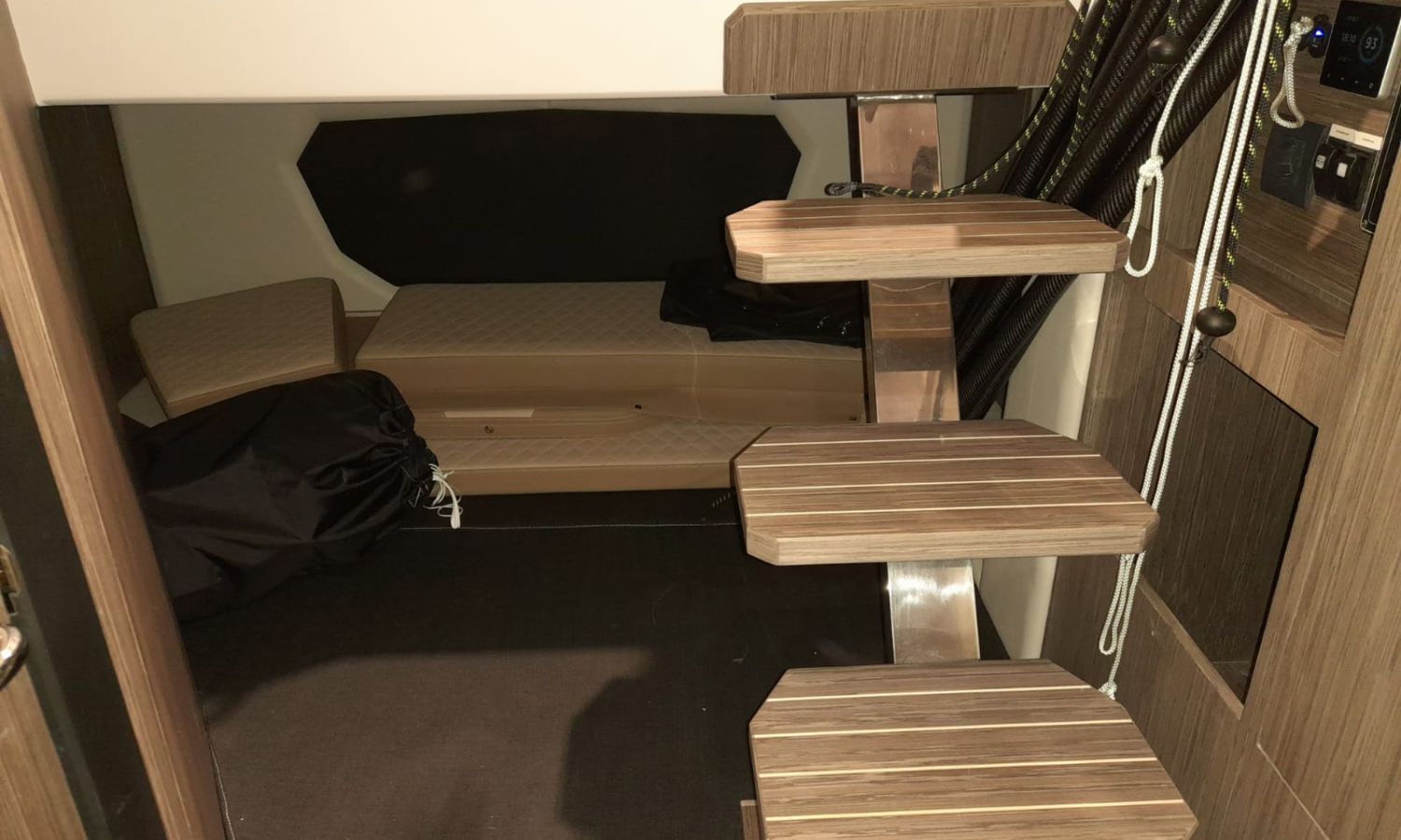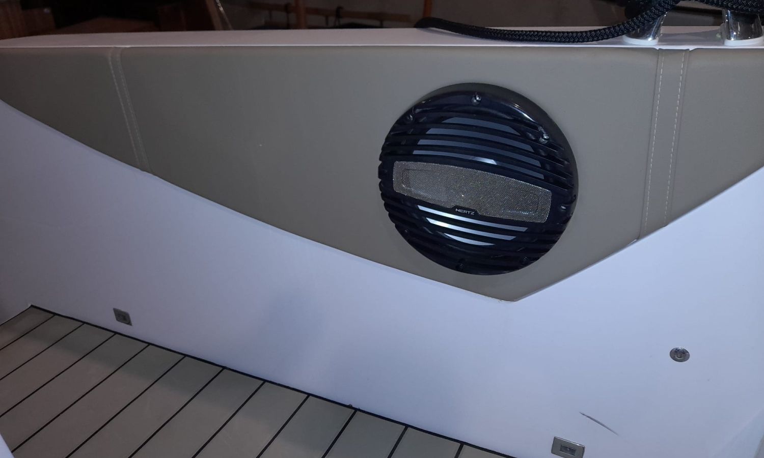 Taud soleil - Douche à poupe - Plateforme de bain avec échelle - Seadek - Bain de soleil à l'arrière - Coussins bain de soleil à l'avant - Table de cockpit - Meuble-bar avec évier - Réfrigérateur dans le cockpit 12 V - Cuisine à gaz - Chauffe eau - Guindeau électrique avec ancre et chaîne - GPS/Plotter/Sondeur - VHF - Commandes électroniques - Pilote automatique - Propulseur d'étrave - Équipement d'audio - Prise de quai 220 V - Propulseur d'étrave - Chargeur de batterie - WC électrique avec réservoir d'eaux sales - Cabine - Taud de mouillage - Anti-algues.Description du bateau