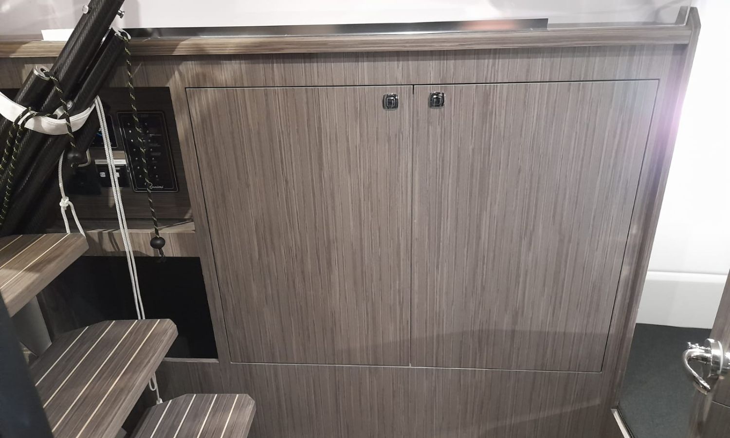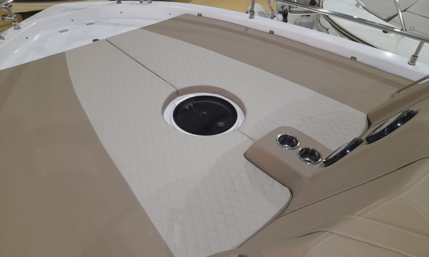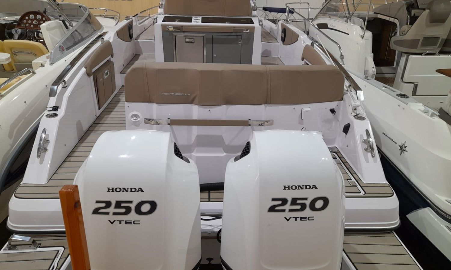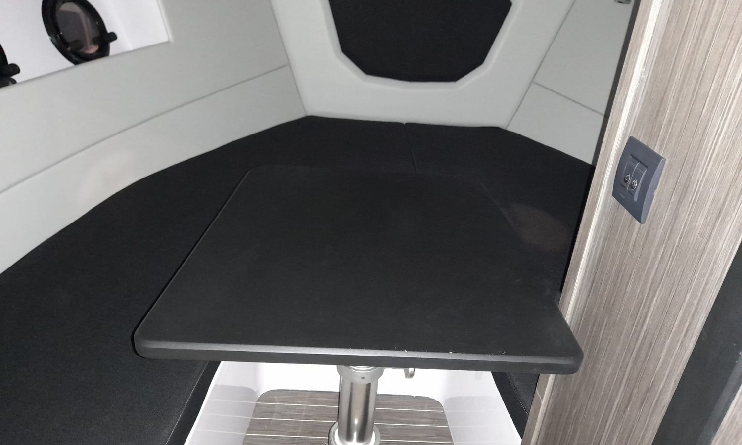 Taud soleil - Douche à poupe - Plateforme de bain avec échelle - Seadek - Bain de soleil à l'arrière - Coussins bain de soleil à l'avant - Table de cockpit - Meuble-bar avec évier - Réfrigérateur dans le cockpit 12 V - Cuisine à gaz - Chauffe eau - Guindeau électrique avec ancre et chaîne - GPS/Plotter/Sondeur - VHF - Commandes électroniques - Pilote automatique - Propulseur d'étrave - Équipement d'audio - Prise de quai 220 V - Propulseur d'étrave - Chargeur de batterie - WC électrique avec réservoir d'eaux sales - Cabine - Taud de mouillage - Anti-algues.Description du bateau