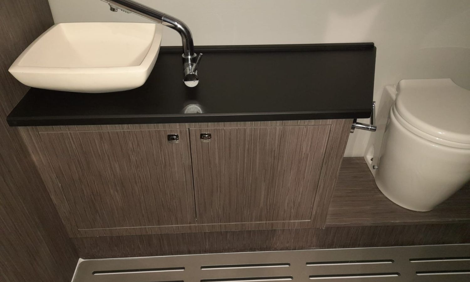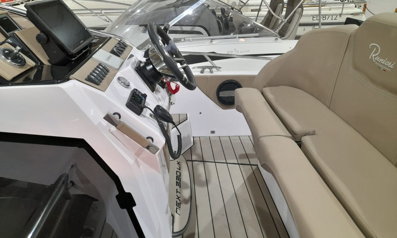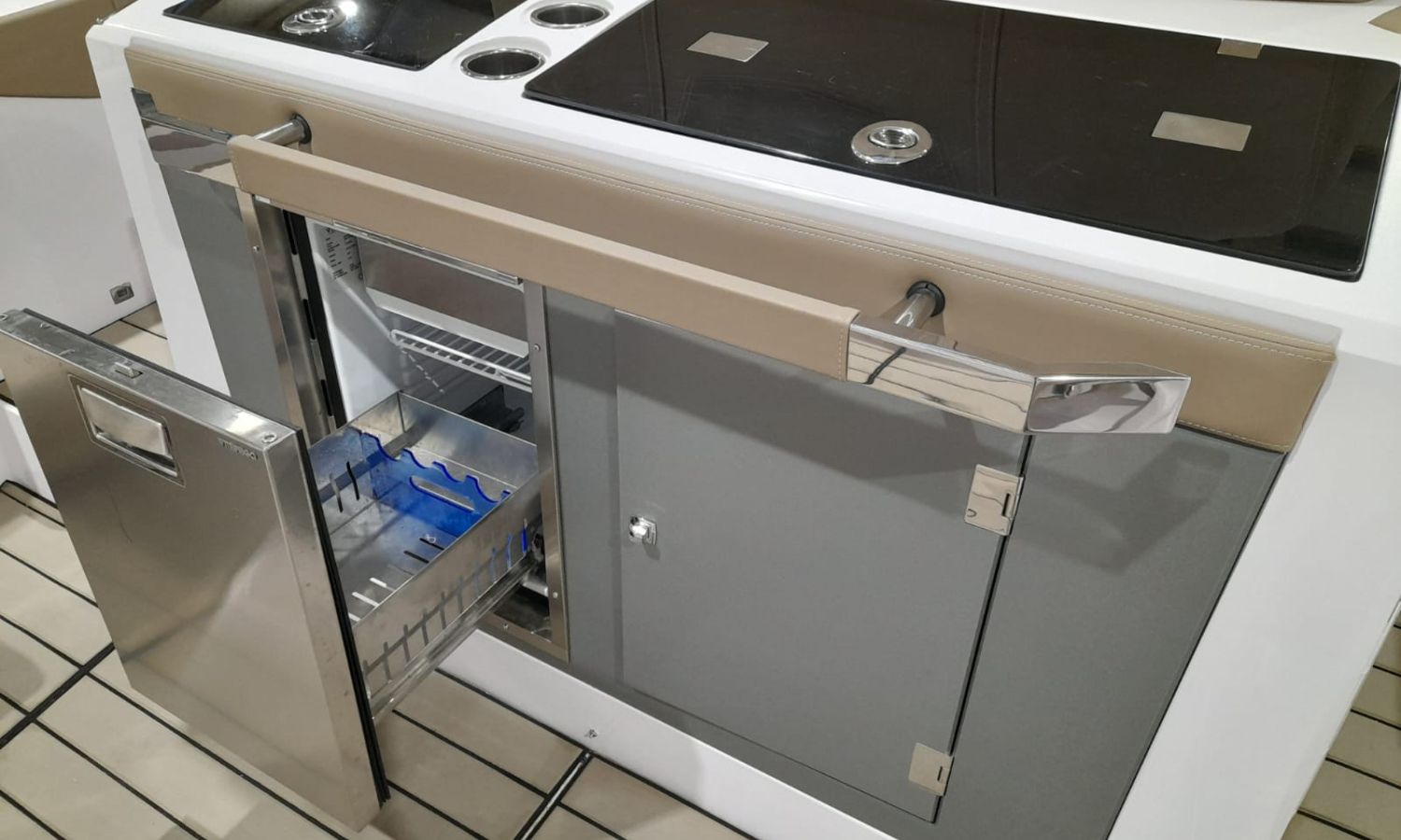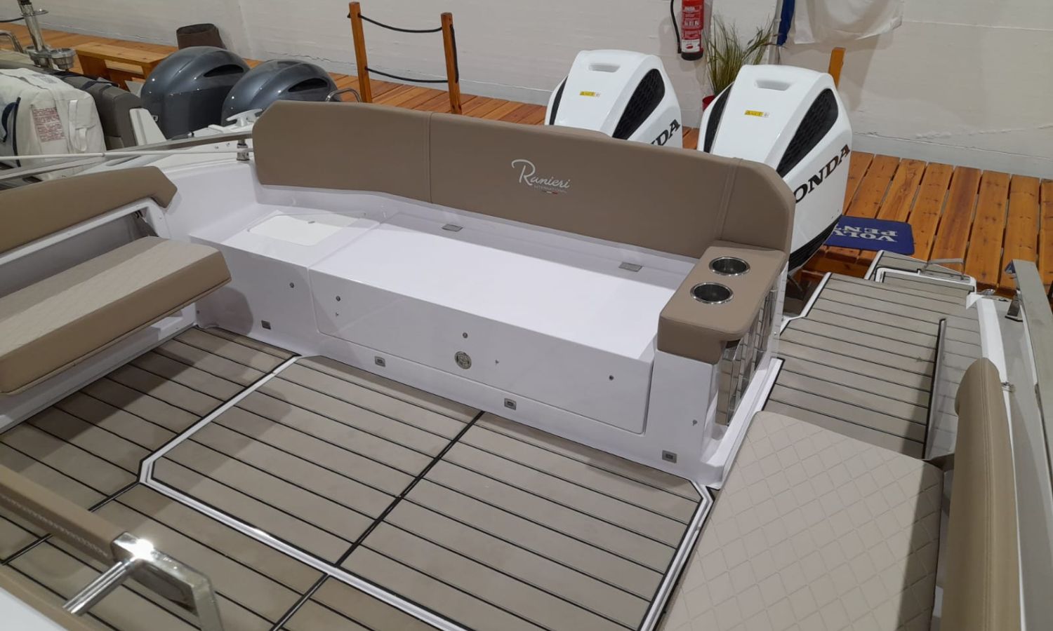 Taud soleil - Douche à poupe - Plateforme de bain avec échelle - Seadek - Bain de soleil à l'arrière - Coussins bain de soleil à l'avant - Table de cockpit - Meuble-bar avec évier - Réfrigérateur dans le cockpit 12 V - Cuisine à gaz - Chauffe eau - Guindeau électrique avec ancre et chaîne - GPS/Plotter/Sondeur - VHF - Commandes électroniques - Pilote automatique - Propulseur d'étrave - Équipement d'audio - Prise de quai 220 V - Propulseur d'étrave - Chargeur de batterie - WC électrique avec réservoir d'eaux sales - Cabine - Taud de mouillage - Anti-algues.Description du bateau