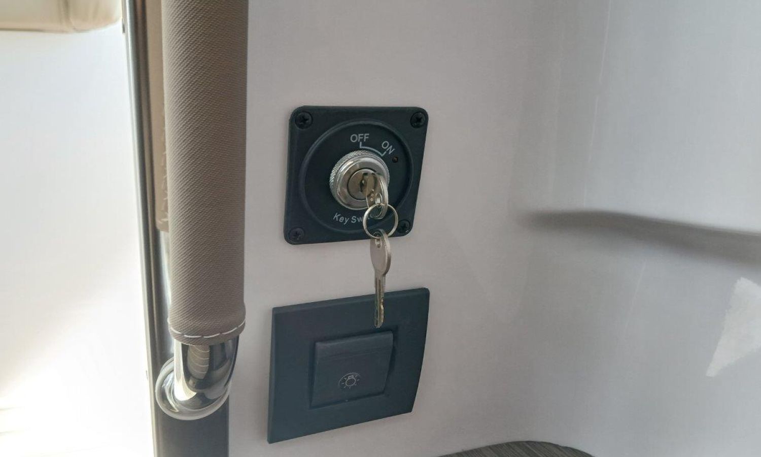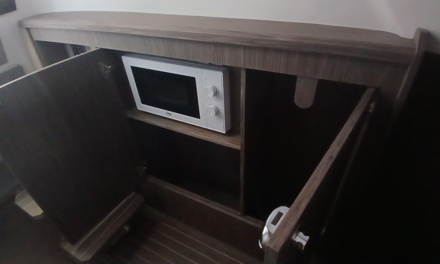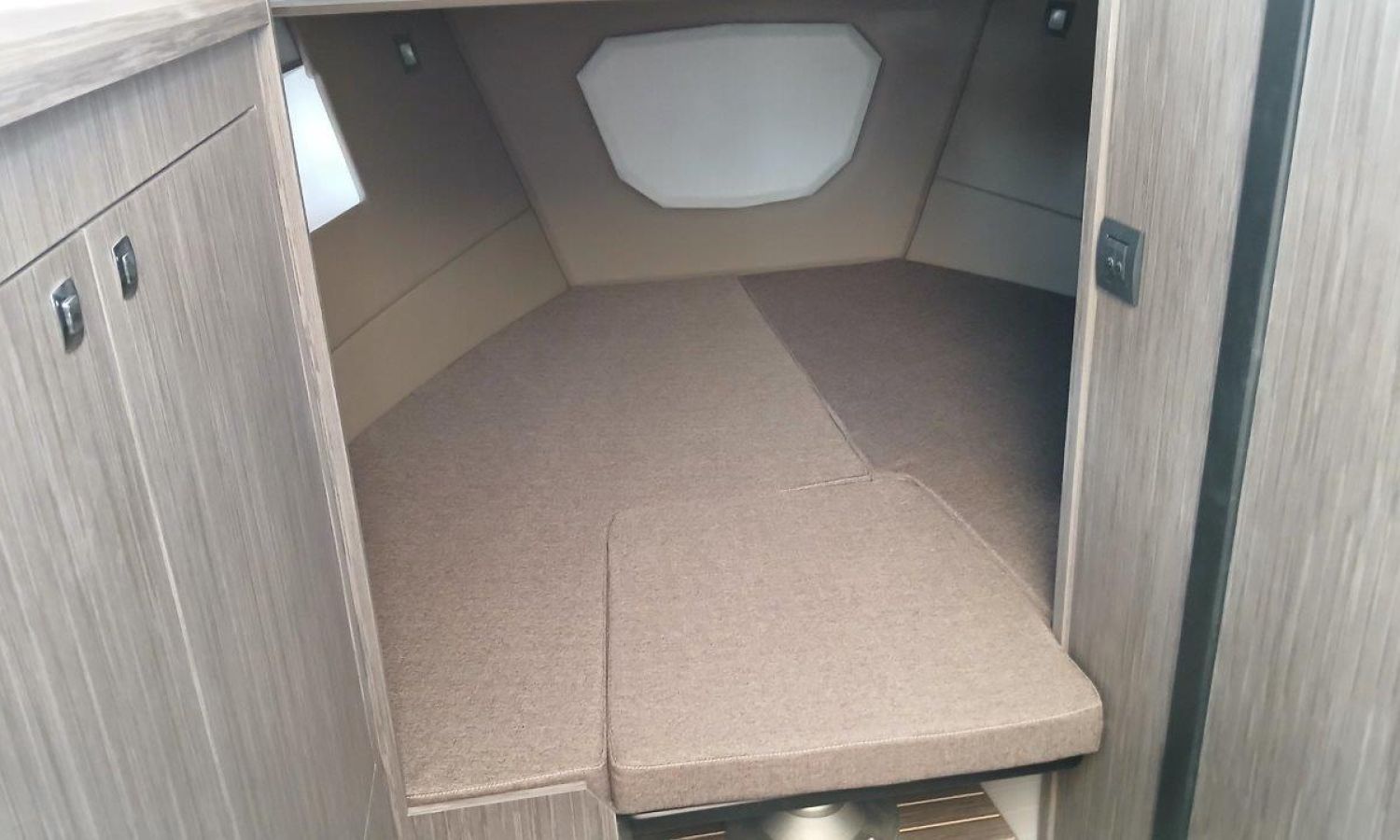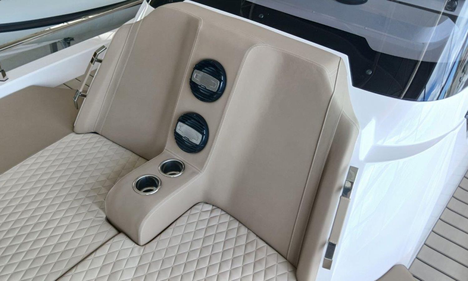 Couleur gris latéraux coque - Compte-mètres chaîne - Propulseur d'étrave - Four à micro-ondes avec inverter - Installation pour batterie additionnelle - Kit mât de ski - Prise de quai 220 V - Bancs latéraux pliables - Taud de mouillage - Taud soleil - Pre-rigging Suzuki électronique bi-moteur -Transport chantier naval à Costa Brava.Description du bateau