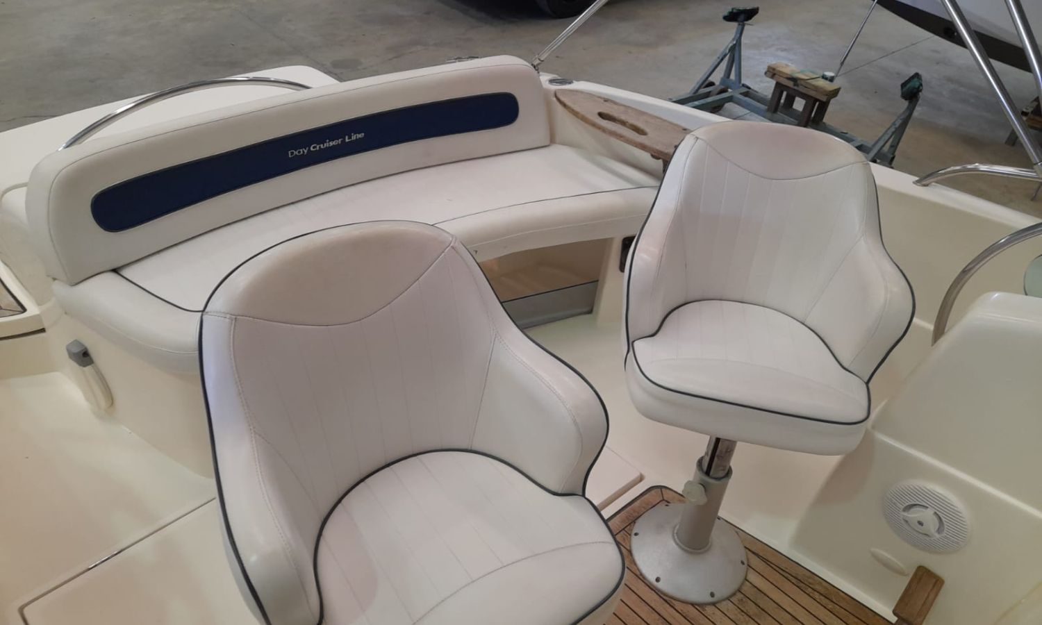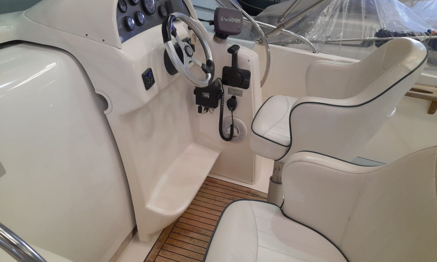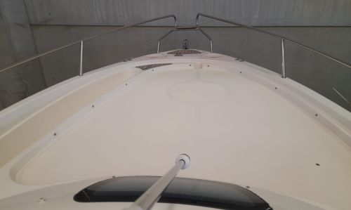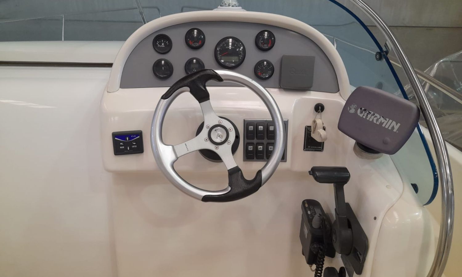 Taud soleil - Plateforme de bain avec échelle - Bain de soleil à proue - Réfrigérateur 12 V - Cuisine à gaz - VHF - Sondeur garmin - Équipement d'audio - Guindeau électrique avec ancre et chaîne - WC électrique avec réservoir d'eaux sales - Cabine - Compas - Taud de mouillage - Anti-algues.Description du bateau