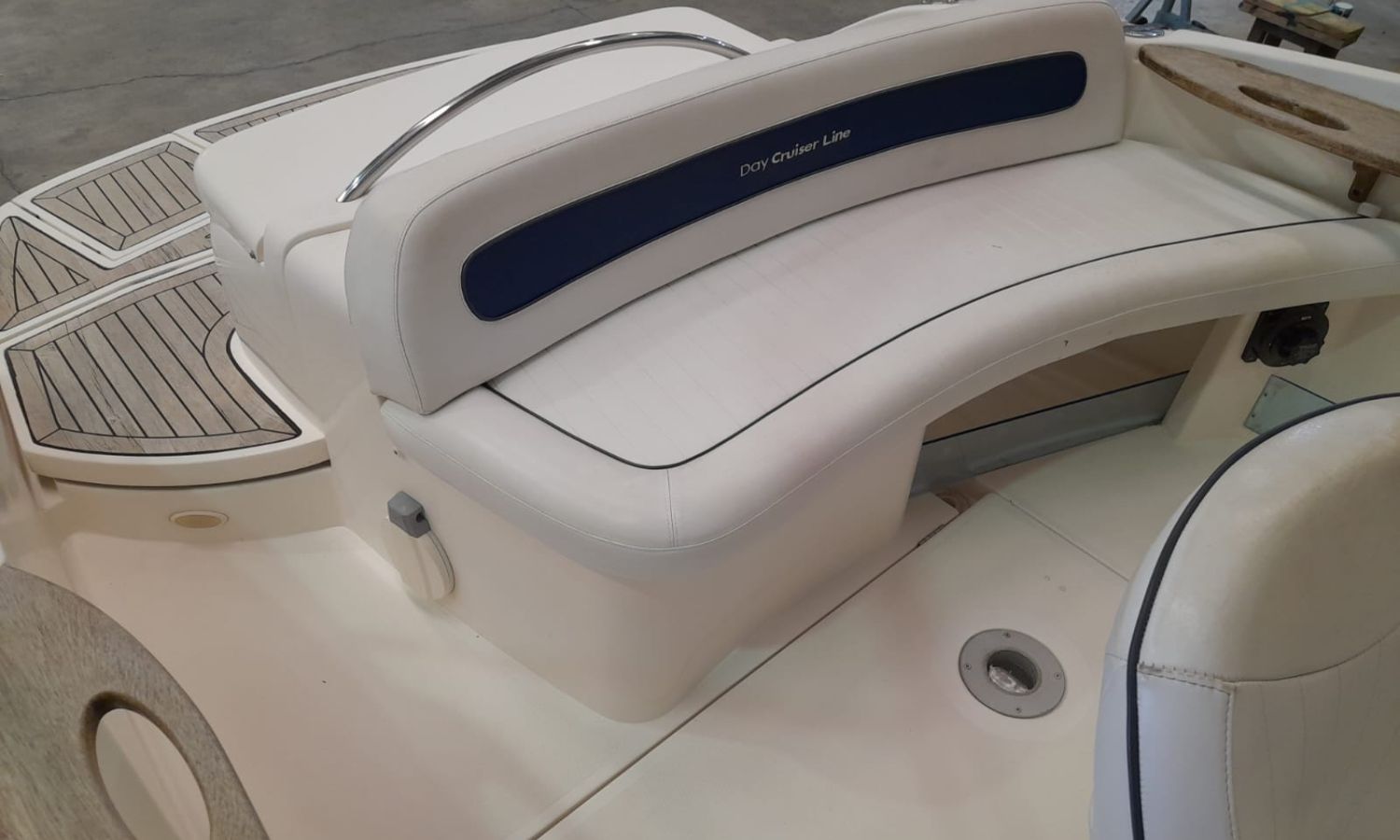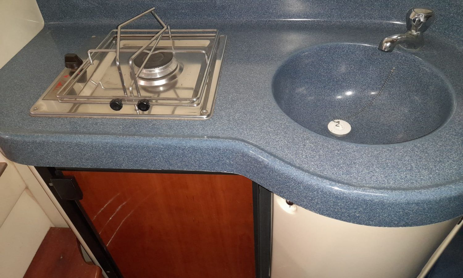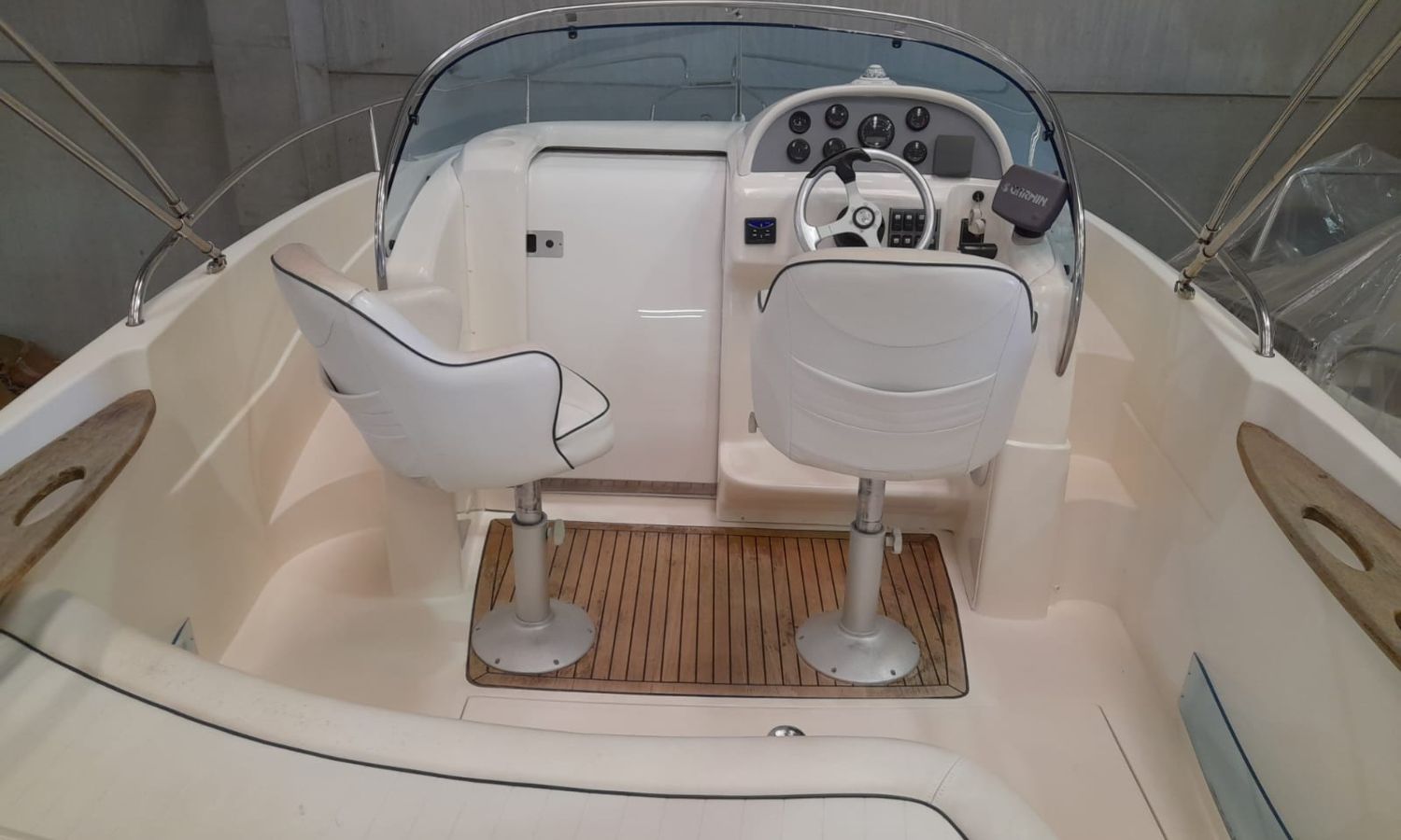 Taud soleil - Plateforme de bain avec échelle - Bain de soleil à proue - Réfrigérateur 12 V - Cuisine à gaz - VHF - Sondeur garmin - Équipement d'audio - Guindeau électrique avec ancre et chaîne - WC électrique avec réservoir d'eaux sales - Cabine - Compas - Taud de mouillage - Anti-algues.Description du bateau