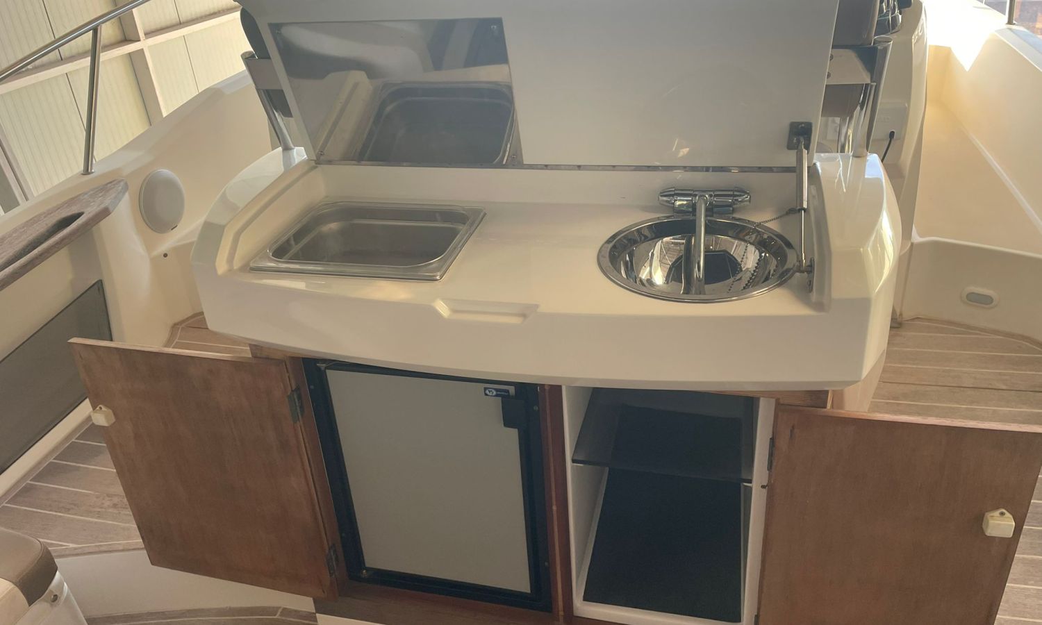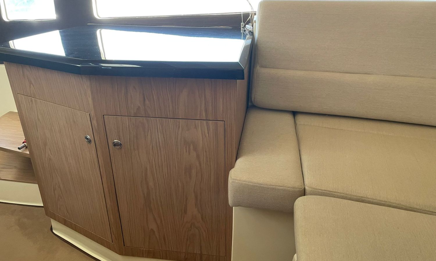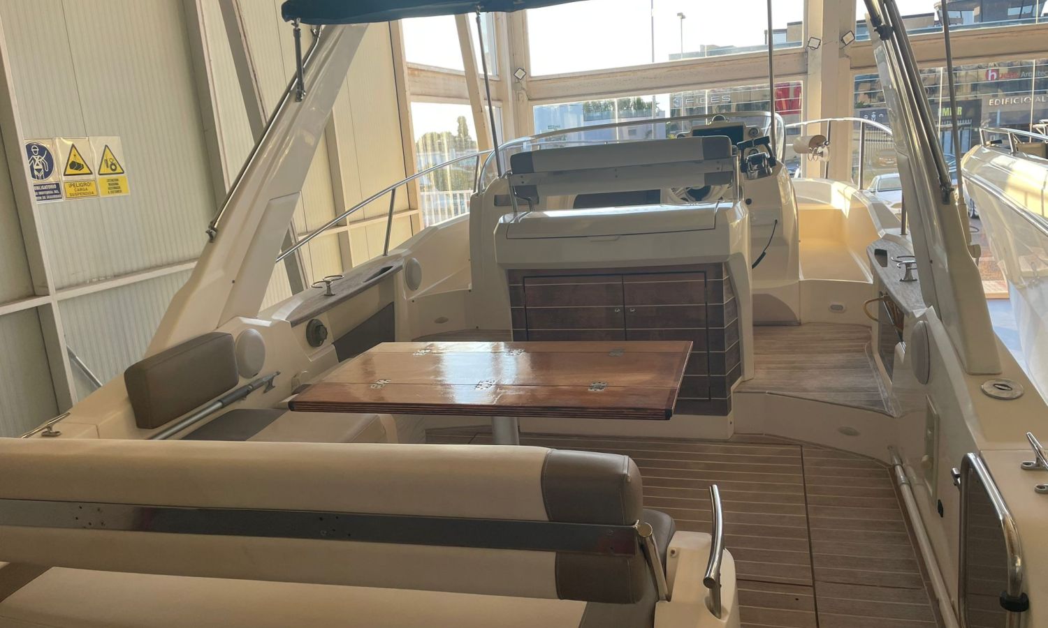 Guindeau électrique-Vhf-Sondeur Gps Plotter-Indicateurs Vesselview Smartcraft Mercury-Compteur Chaîne-Axius Mercruiser Joystick-Chargeur de batteries-Plateforme de bain-Douche a poupe-Distribution en forme de U dans le cockpit-Table cockpit transformable en solarium-Meuble bar avec évier dans le cockpit-Frigo 12 v dans le cockpit-Table salon convertible en lit-Toilette électrique-Douche dans la salle de bain-Lavabo dans la salle de bain avec eau chaud-Bimini-Taud mouillage-Coussin bain de soleil avant-modele Walk-around-Arc radar avec lumières-Grande cabine arrière/poupe avec lit double.Description du bateau