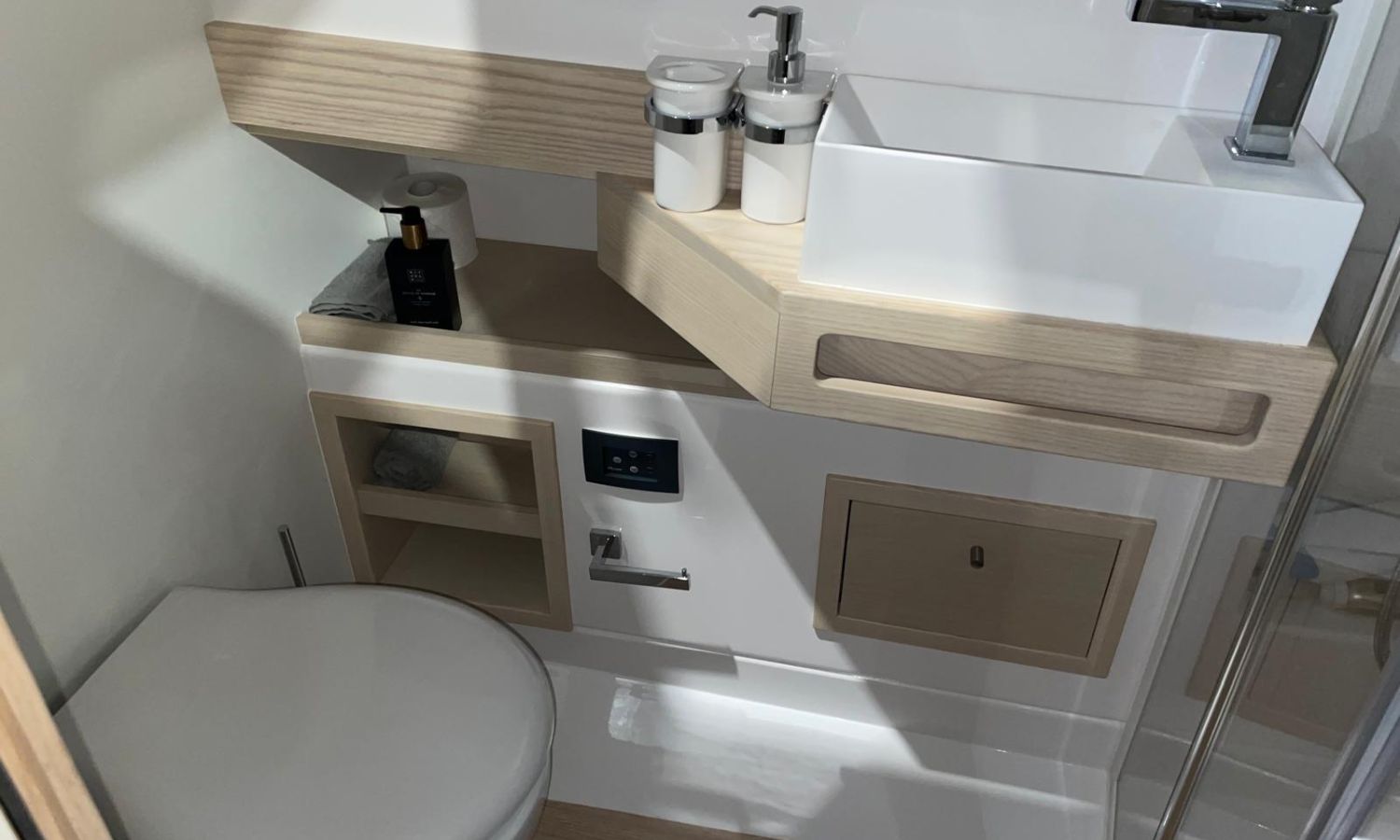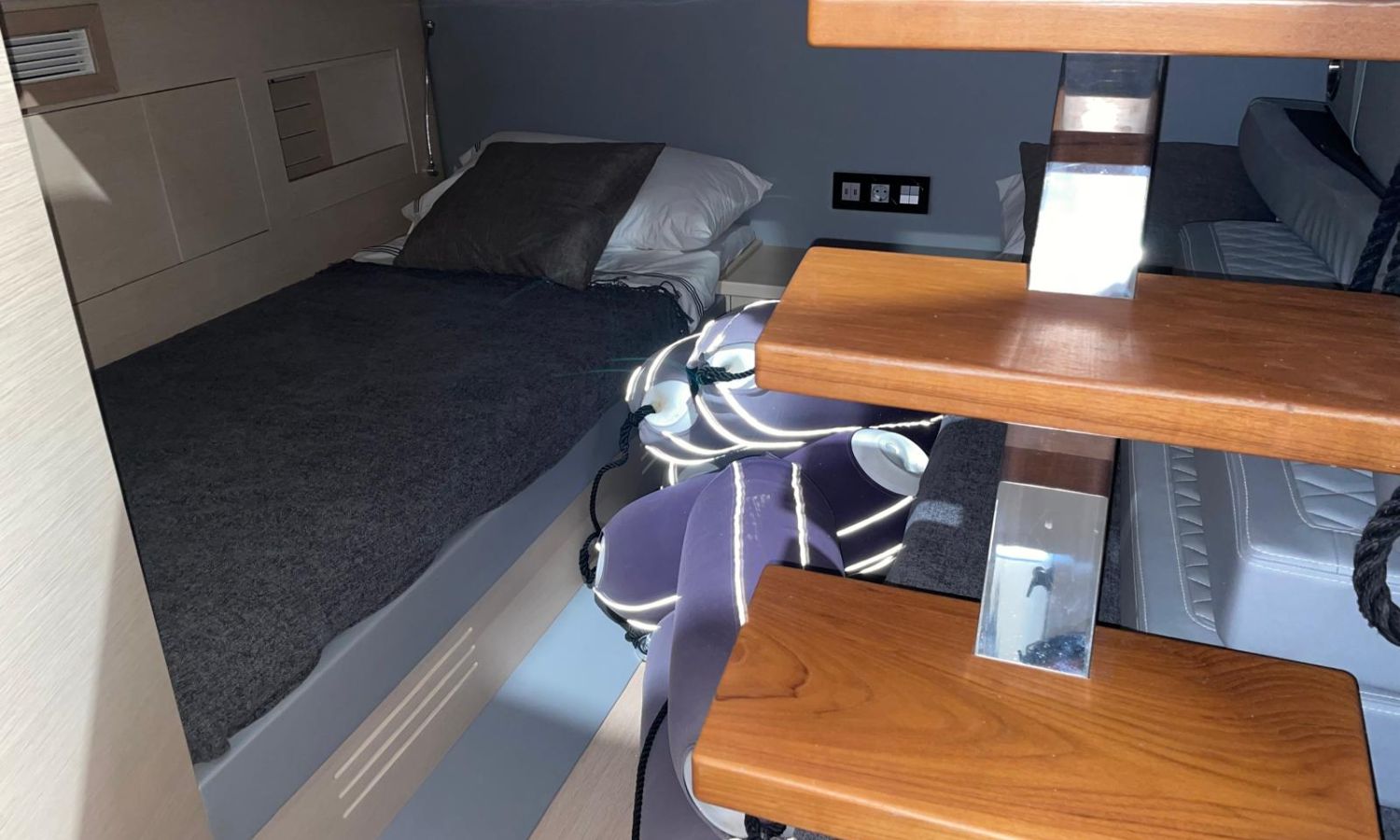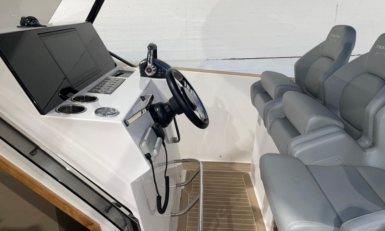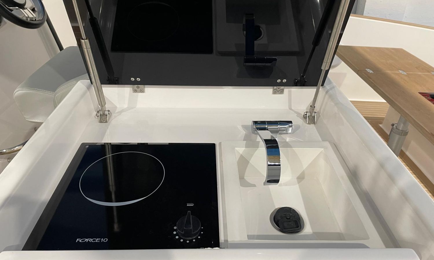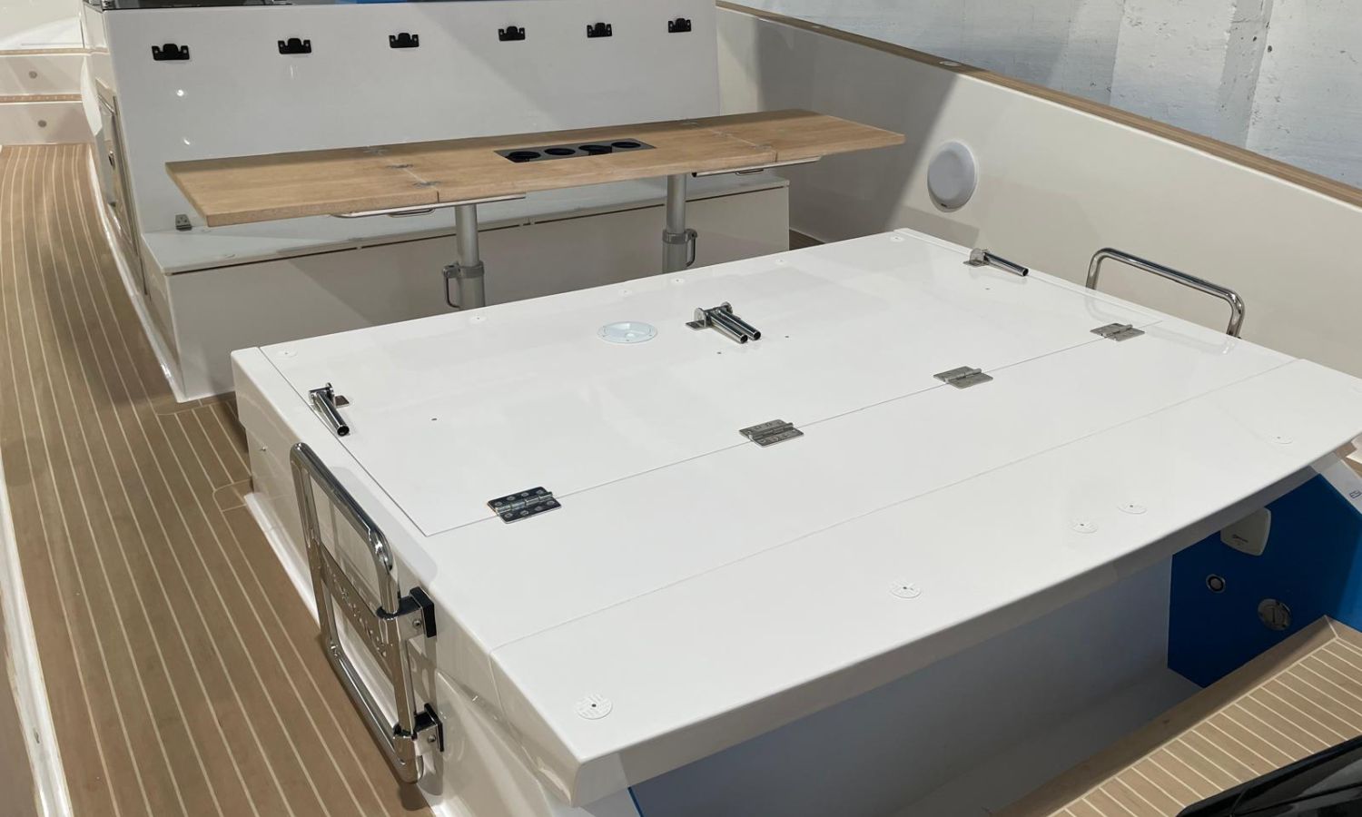 T-Top - Plate-forme de bain avec echelle - Chargeur de batterie - Prise bâbord - Table de cockpit - Pont arrière - Réfrigérateur - Equipement audio - Gps/Plotter/Deep fnder - VHF - Compas - Evier - Wc electrique - Chauffe-eau - Plaque de cuisson à induction - Teck - Solarium - Antifouling.Description du bateau