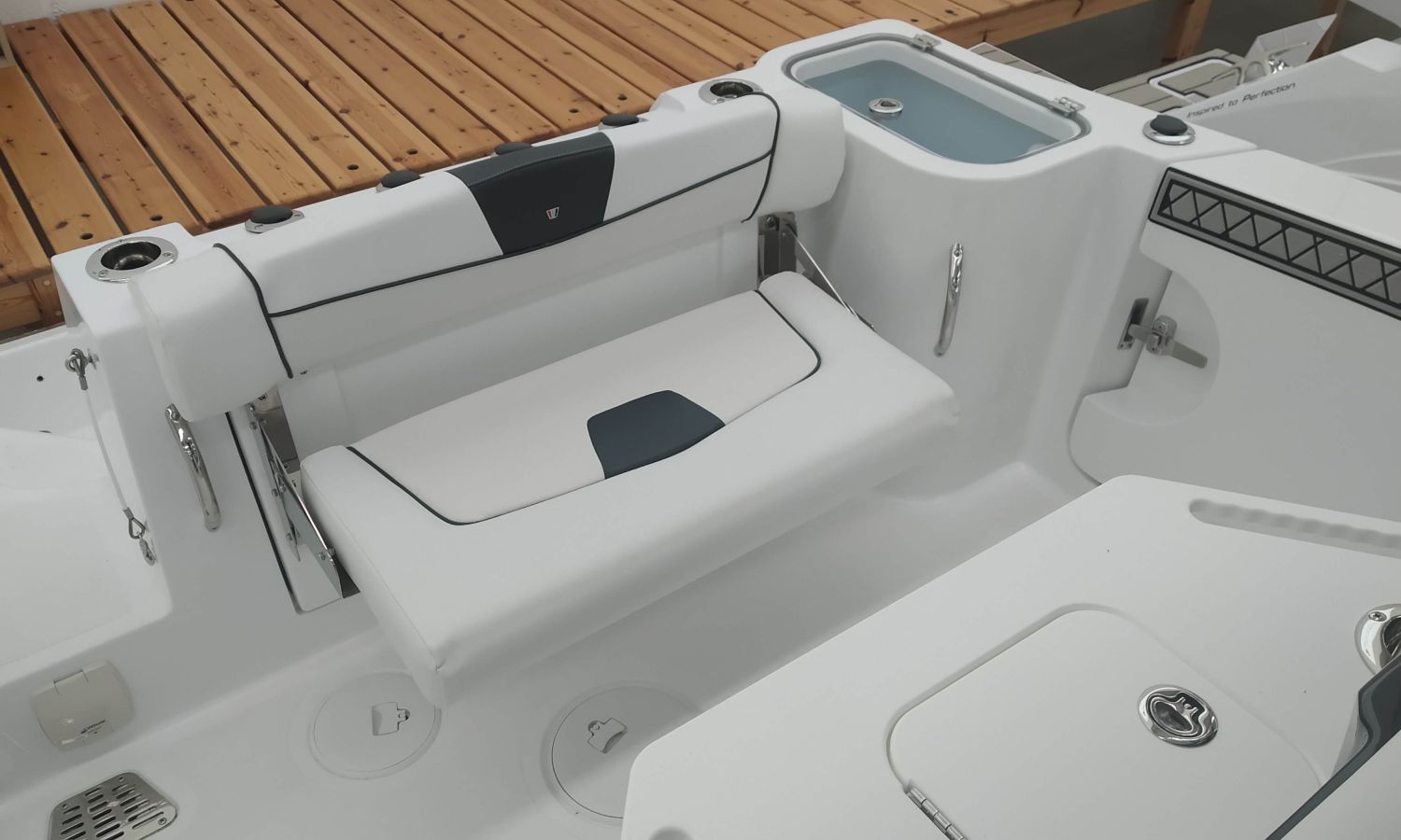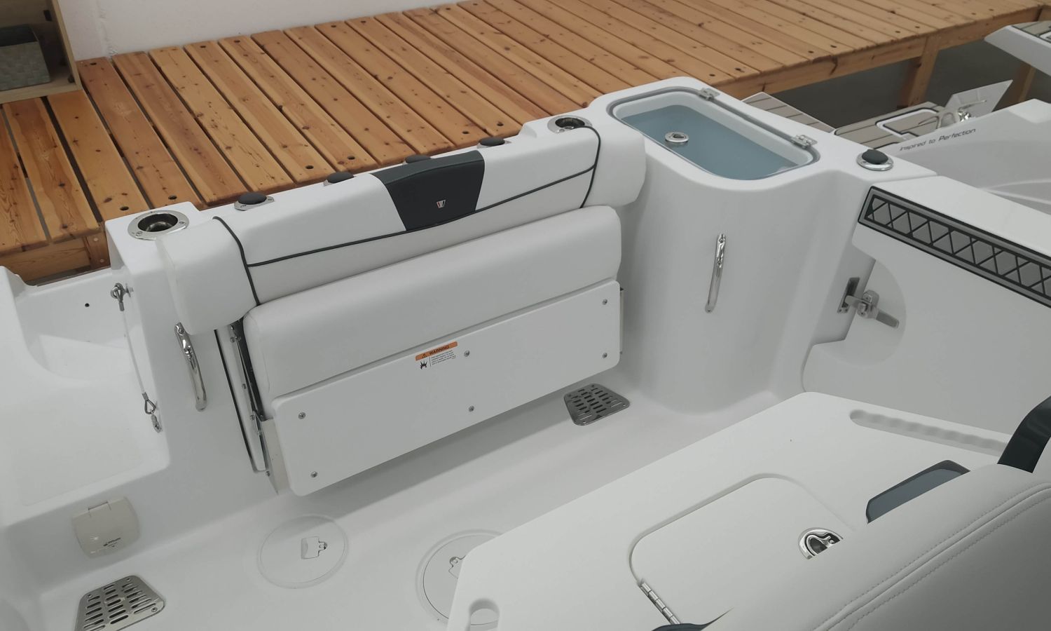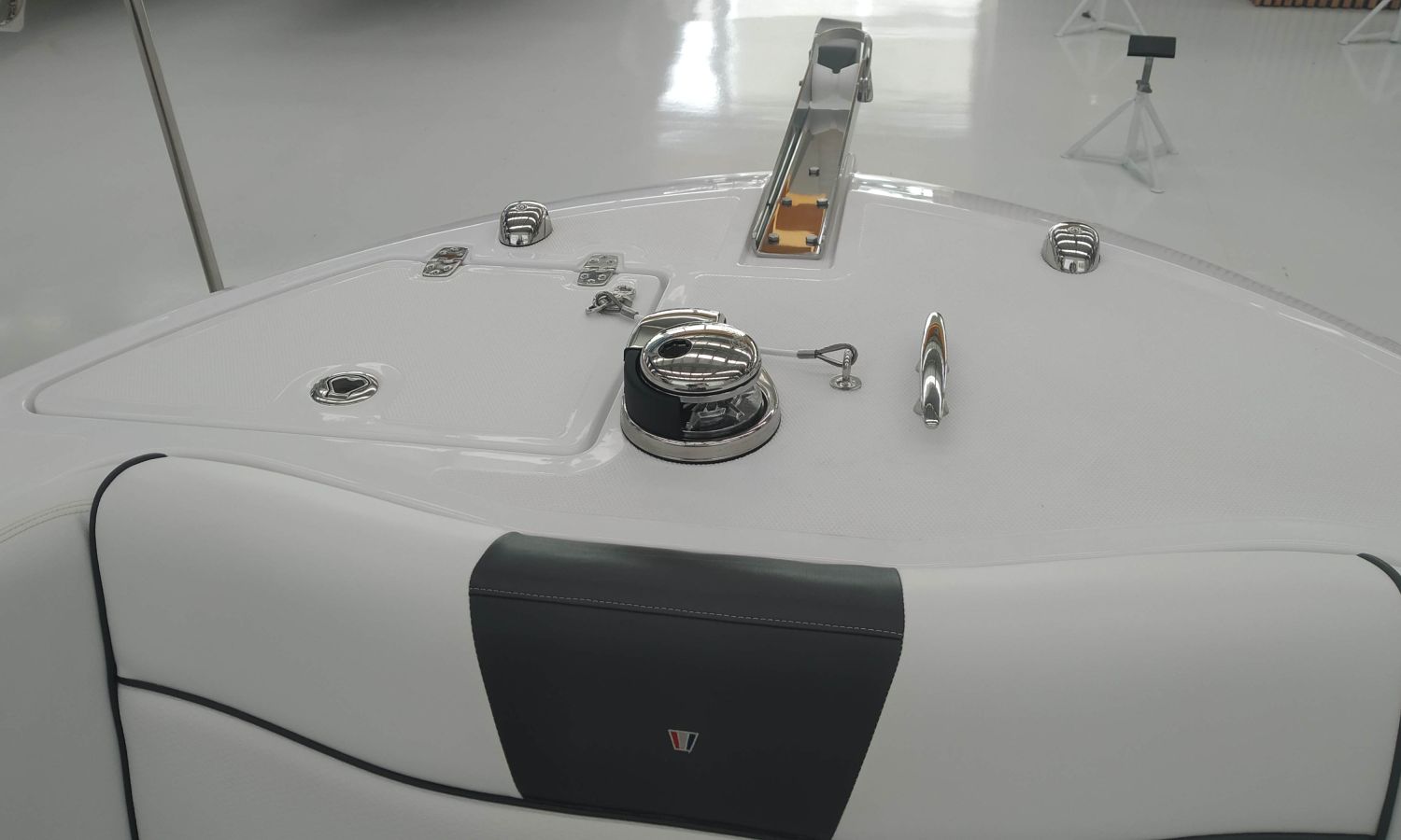 Coque centrale noire - Coussin de bain de proue - Toilette de poupe + douche - WC marin électrique - Evacuation du WC marin électrique - Pack européen - Chargeur de batterie - Feux sous-marins - T-Top - Jeux de coussins avant - Table de cockpit à l'avant - Taud de soleil de cockpit à l'avant - Tapis de cockpit sur le plancher du pilote + porte-cannes latéraux - Porte latérale - Sièges de cockpit Premium - Tiroirs de rangement à l'arrière Table de cockpit à l'avant - Taud de soleil à l'avant - Moquette sur le plancher du pilote + porte-cannes latéraux - Dossier amovible des sièges avant - Guindeau électrique + kit d'ancrage - Transport Chantier naval-Costa-Brava.Description du bateau