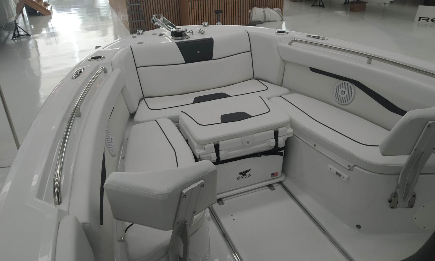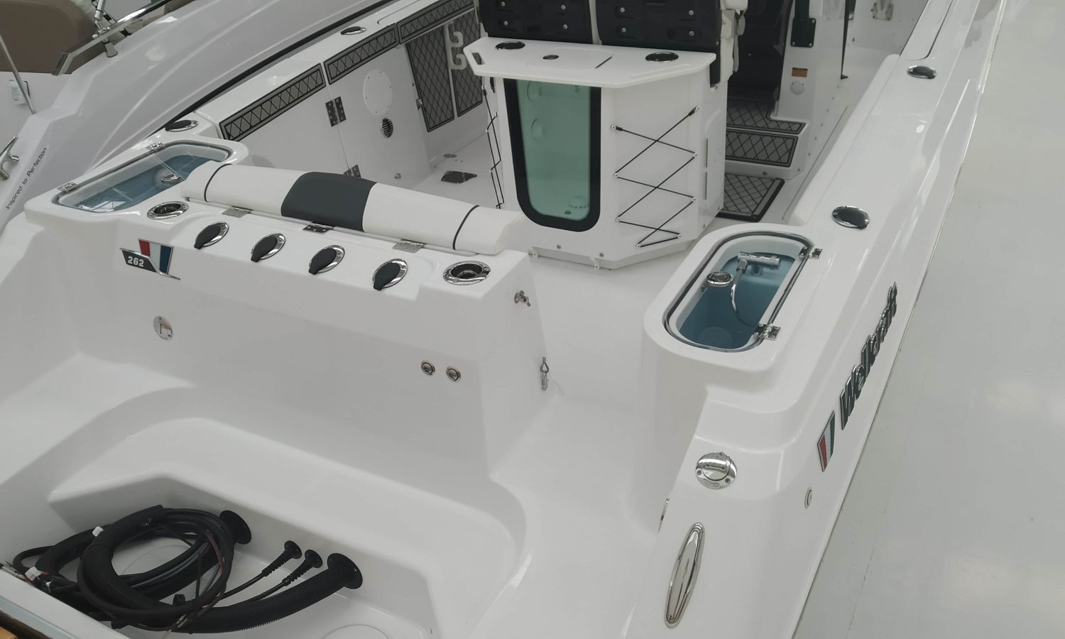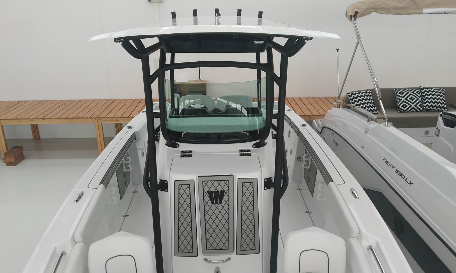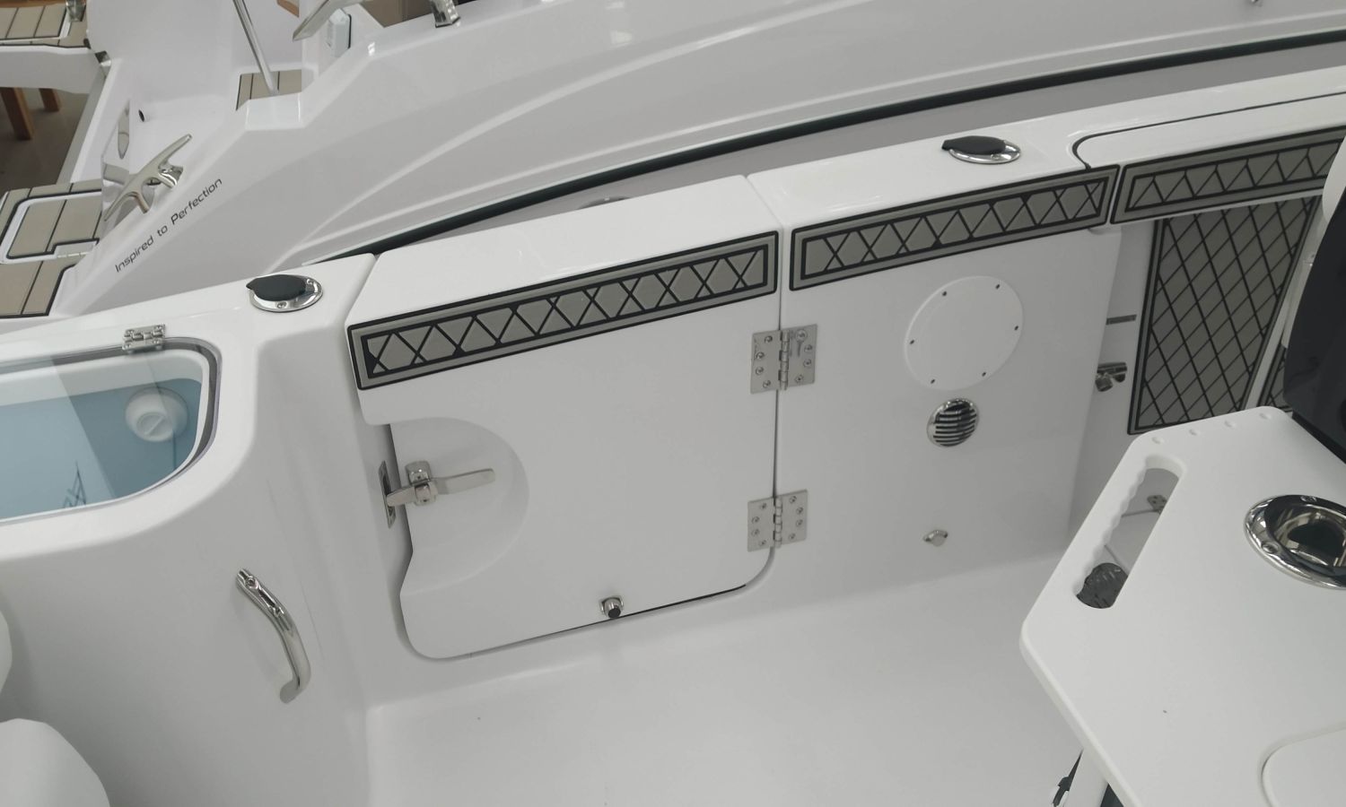 Coque centrale noire - Coussin de bain de proue - Toilette de poupe + douche - WC marin électrique - Evacuation du WC marin électrique - Pack européen - Chargeur de batterie - Feux sous-marins - T-Top - Jeux de coussins avant - Table de cockpit à l'avant - Taud de soleil de cockpit à l'avant - Tapis de cockpit sur le plancher du pilote + porte-cannes latéraux - Porte latérale - Sièges de cockpit Premium - Tiroirs de rangement à l'arrière Table de cockpit à l'avant - Taud de soleil à l'avant - Moquette sur le plancher du pilote + porte-cannes latéraux - Dossier amovible des sièges avant - Guindeau électrique + kit d'ancrage - Transport Chantier naval-Costa-Brava.Description du bateau