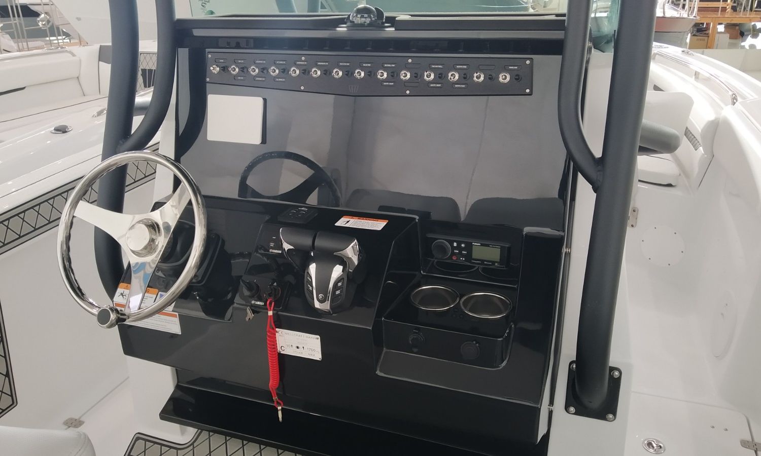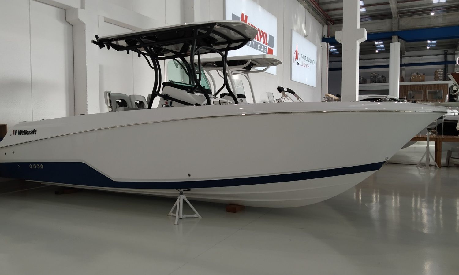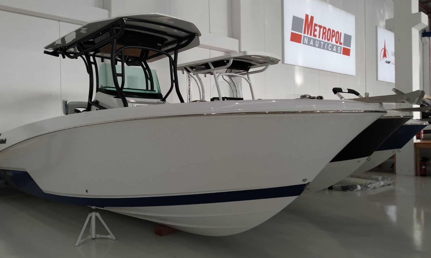 Couleur Cockpit Carbon - Coussin de bain avant - Vivier + douche - WC marin électrique - Vidange marine électrique - Pack européen - Chargeur de batteries - Feux sous-marins - T-Top de luxe - Jeu de coussins d'étrave - Table de cockpit à l'avant - Bain de soleil de cockpit à l'avant - Tapis de cockpit sur le plancher du pilote + porte-cannes latéraux - Porte latérale - Sièges de cockpit premium - Tiroirs de rangement à l'arrière - Taud de soleil de cockpit avec supports en carbone - Dossier amovible sur les sièges avant - Guindeau électrique + kit d'ancrage - Coque inférieure bleue - Bâche de console et sièges - Transport Chantier naval-Costa-BravaDescription du bateau