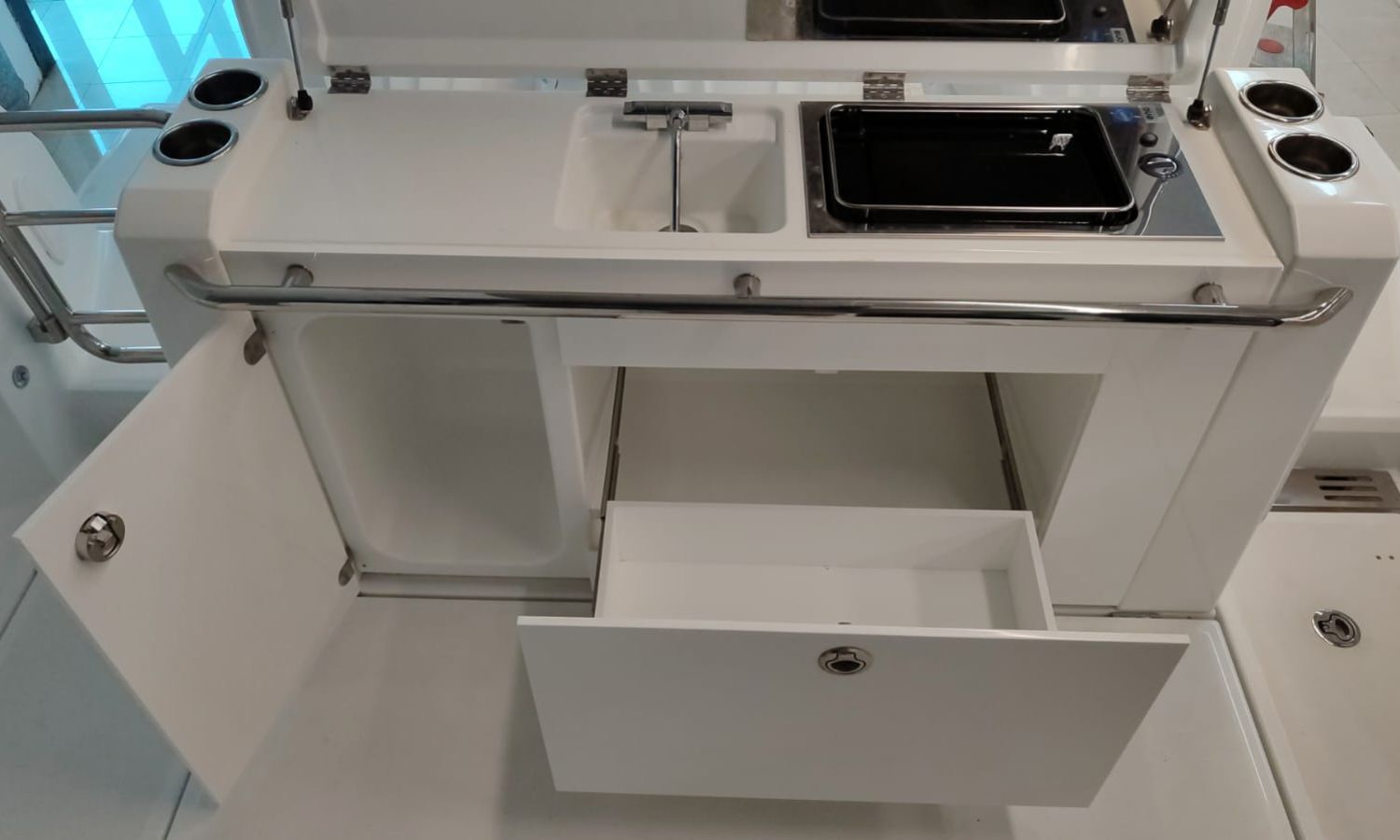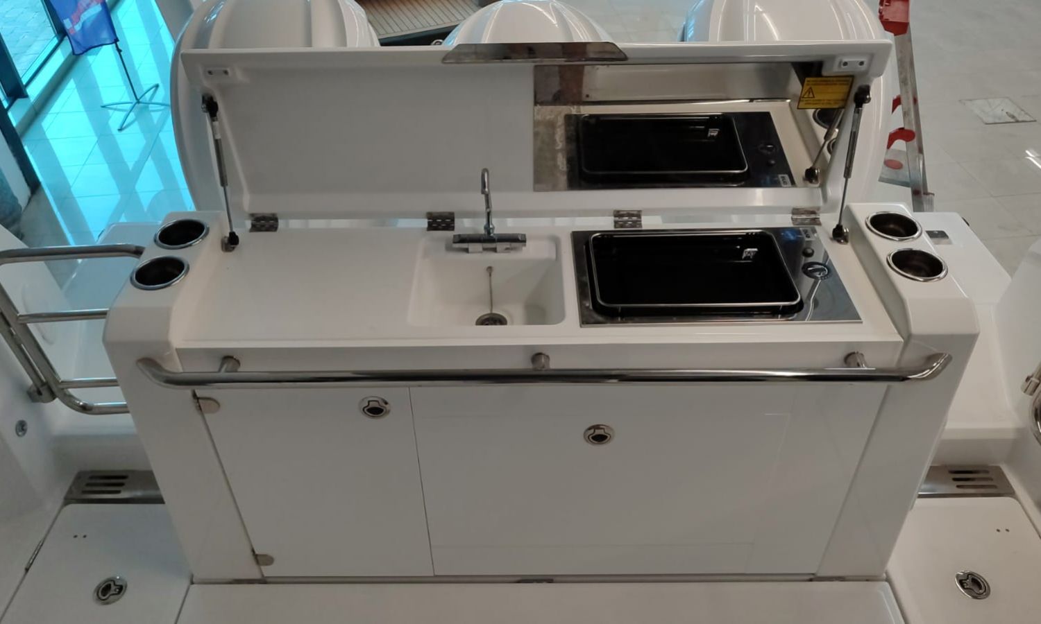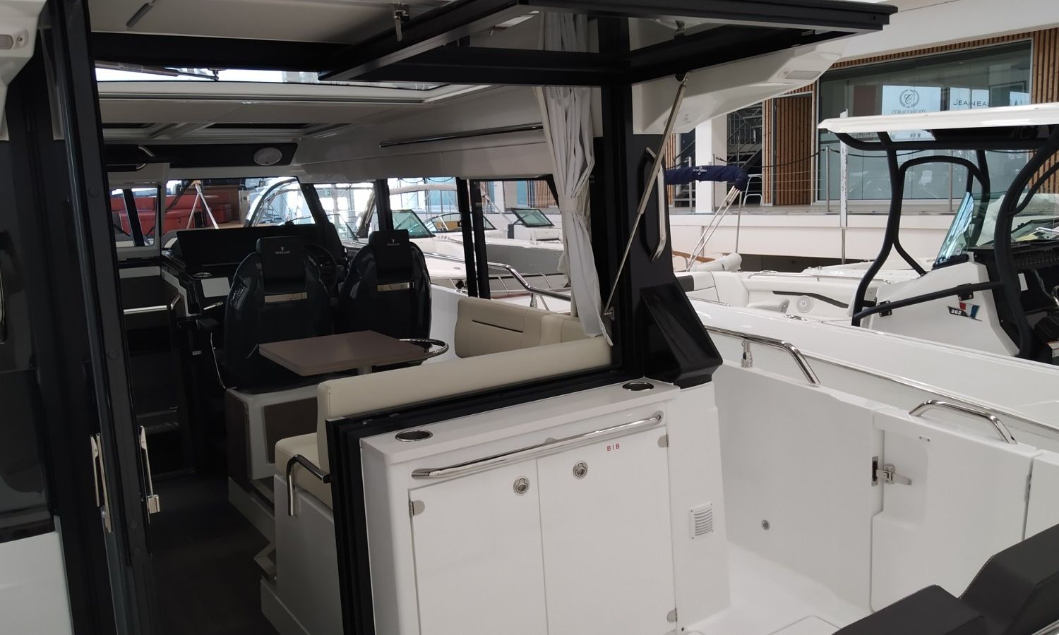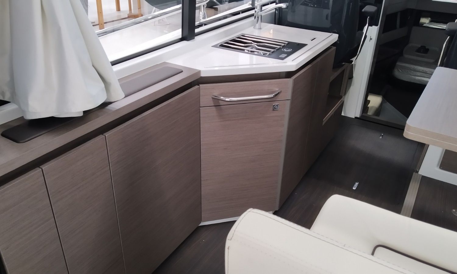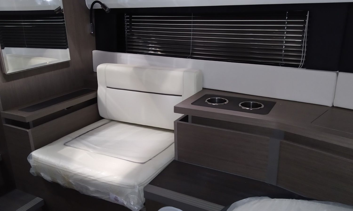 SELLERIE DOLCE IVORY - VERSION CUISINE ARRIÈRE - PREMIERE NIVEAU DE FINITION - SUPERIOR ELECTRONICS PACK - SUPERIOR AUDIO PACK - TAUD DE SOLEIL À L'AVANT - TAUD DE SOLEIL À L'ARRIÈRE - PLATEFORME AVEC ÉCHELLE - ÉCHELLE DE BAIN MOBILE POUR PORTE LATÉRALE - PORTE-BAGAGES SUR LE TOIT DU GOUVERNAIL - BAIN DE SOLEIL ET COUSSINS D'ASSISE À L'AVANT - BAR À LED DANS LE GOUVERNAIL - CUISINIÈRE 1 FEU - PLAQUE DE CUISSON AU GAZ POUR VERSION CUISINE ARRIÈRE - PRÉ-INSTALLATION POUR MICRO-ONDES - LIT DOUBLE DANS LE SALON - 2 POUFS DANS LA DÎNETTE - RADAR GARMIN FANTOM 18 - DÉSEMBUAGE - MOUSTIQUAIRES DANS LES HUBLOTS - RIDEAUX DANS LE POSTE DE PILOTAGE - (TRANSPORT VERS COSTA-BRAVA INCLUS).Description du bateau