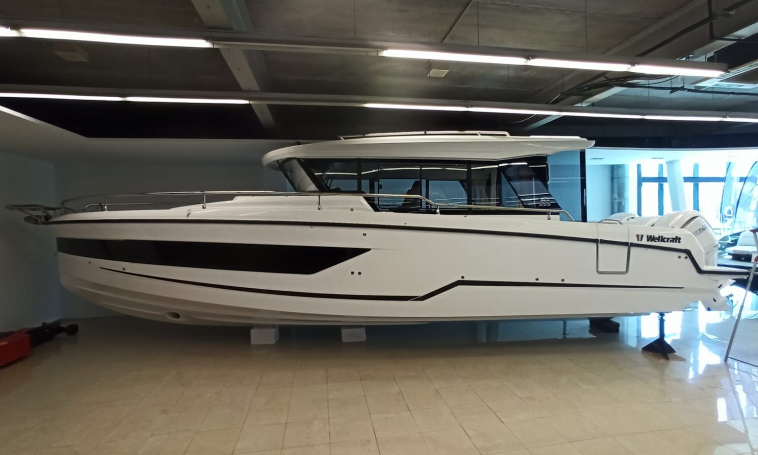 Le Wellcraft 355 prend les devants dans tous les aspects ; design exceptionnel, confort et, surtout, vitesse et navigabilité. Conçu pour repousser les limites - au-delà de l'horizon où l'eau est profonde et où l'aventure commence - Wellcraft utilise son riche héritage d'expérience offshore pour pénétrer ce nouveau marché avec une touche américaine et un enthousiasme debordant.