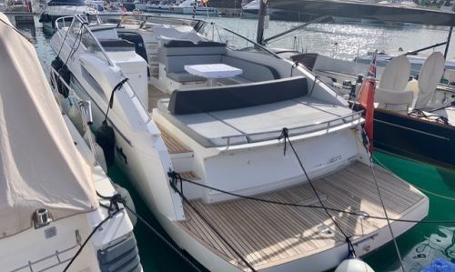 Top bimini - Garage arrière - Générateur - Climatisation - Teck - Table de baignoire électrique - Réfrigérateur intérieur et extérieur - Plaque de cuisson à induction - Nouvelle sellerie extérieure 2022 - Coussins de solariumà l'avant et l'arrière - Prise de port - Chargeur de batterie - Commandes électriques - Gps/Plotter/Sondeur - VHF - Propulseur d'étrave - Joystick - Audio equipement.Description du bateau
